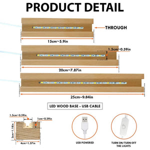 - Package: 1 acrylic plaque + 1 wood base + 1 USB Type A (Wall charger is NOT included)