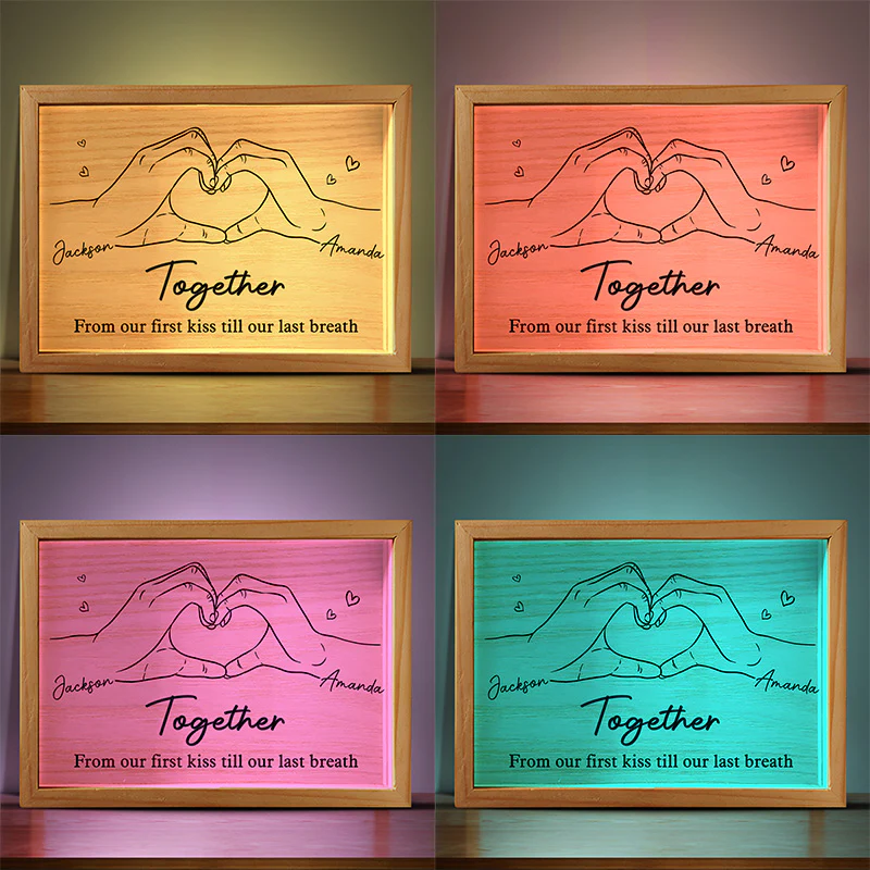Heart Hands Line Art Hands Personalized Frame Light Box, Couple Holding Hand Light Box, Couple Valentine Gift