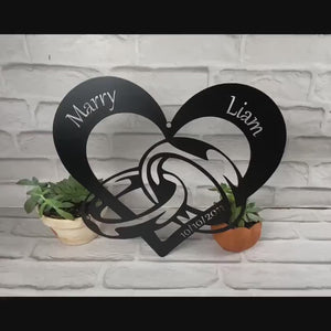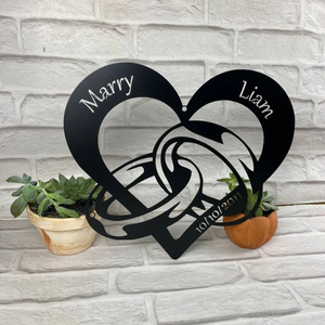 Heart Rings Metal Wall LED Light, Couple Neon Sign, Marriage Couple Neon Wall Decor, Couple Valentine Gift, Wedding Gifts