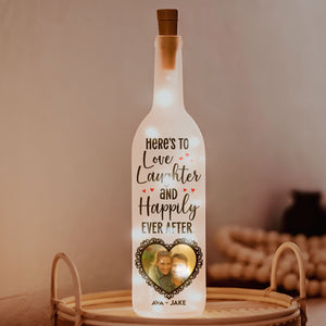 Here's To Happily Ever After Personalized Bottle Lamp, Wine Bottle Lights, Gift For Couple