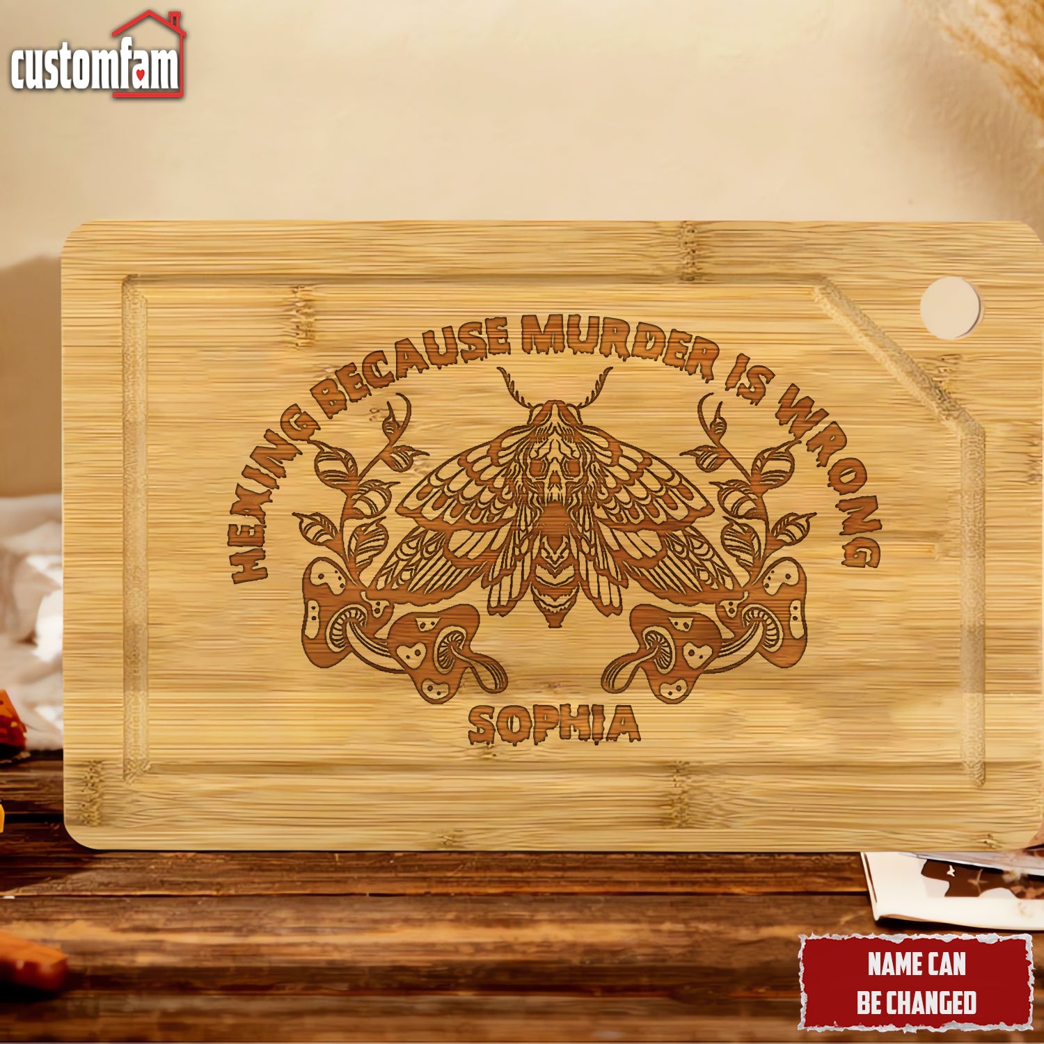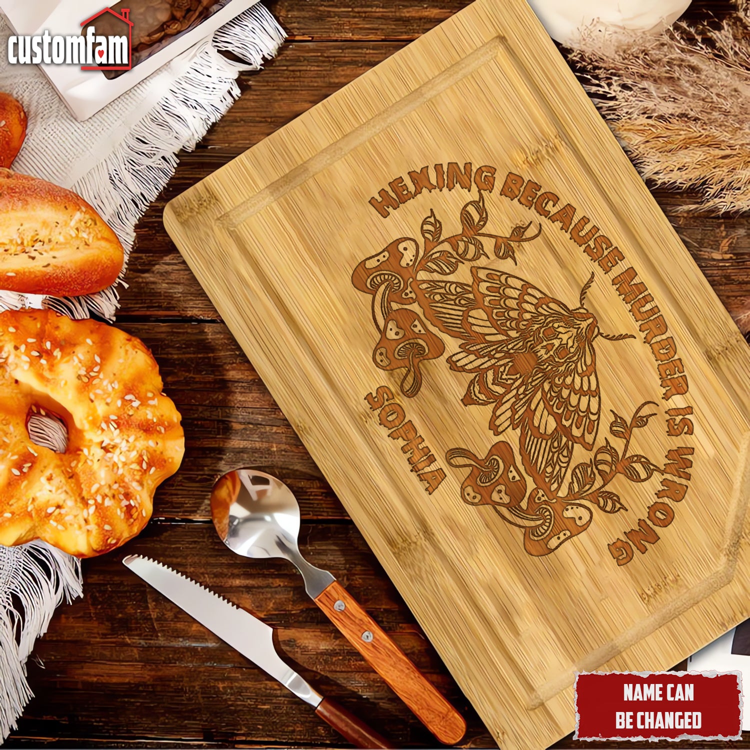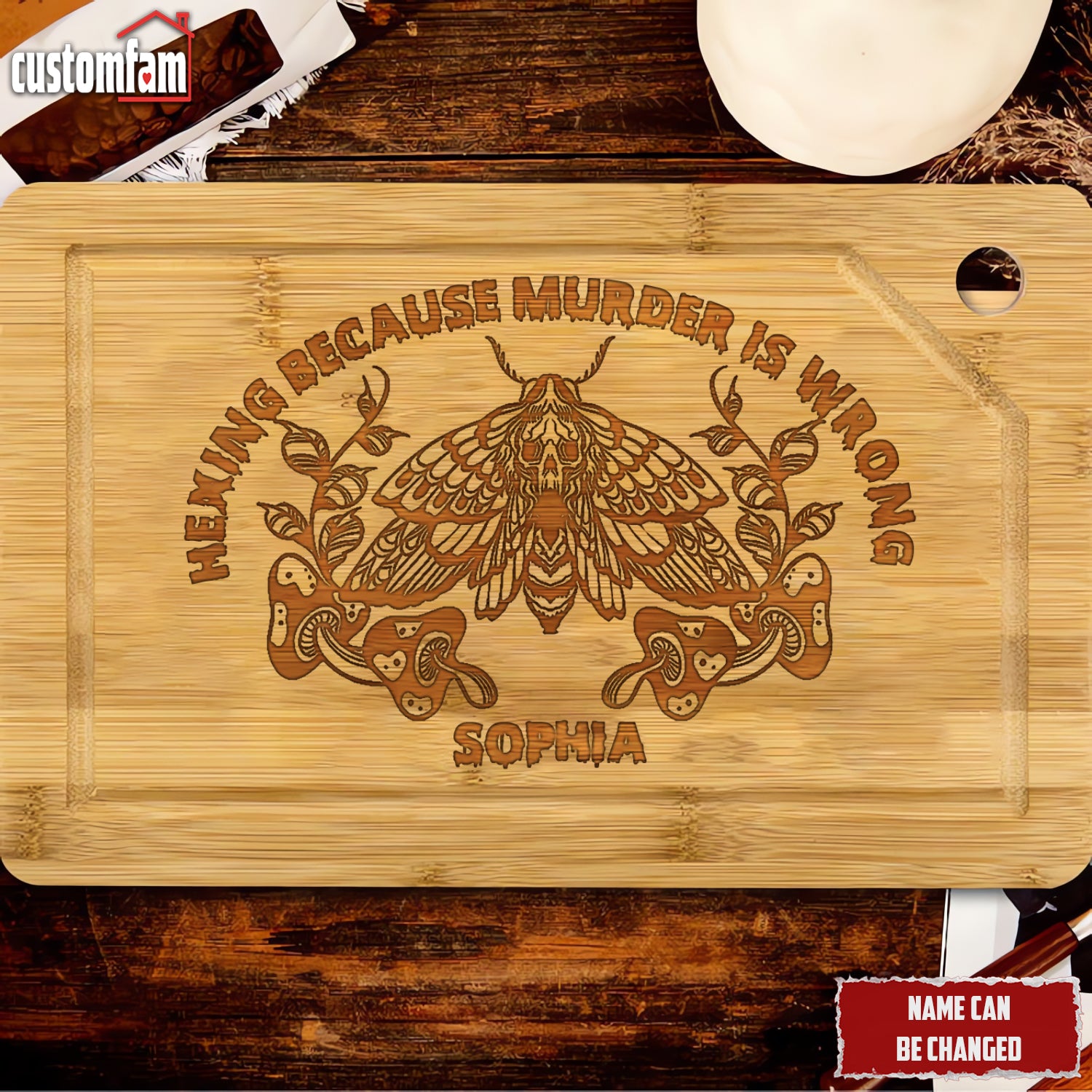 Hexing Because Murder Is Wrong Engraved Personalized Cutting Board, Witch Halloween Gift