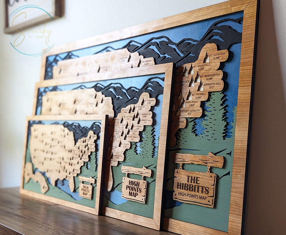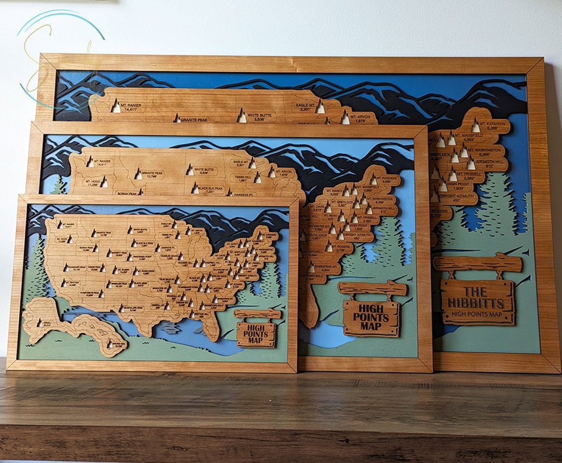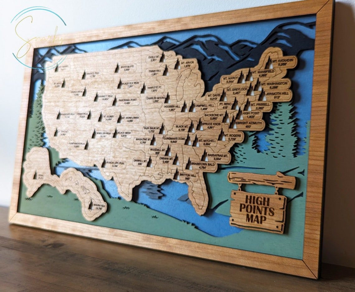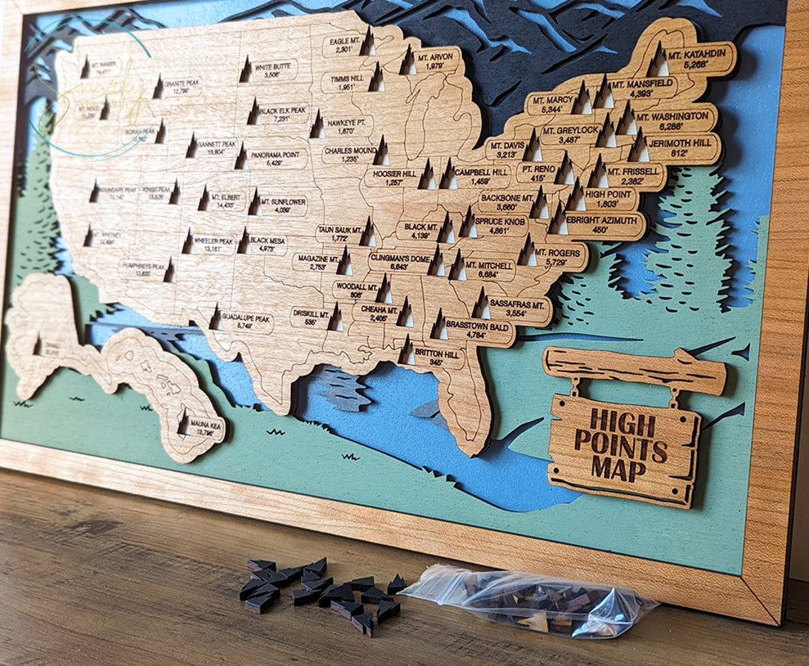 Highest Points In Each State Map, Highest Points Travel Map Tracker, Best Gifts For Hikers