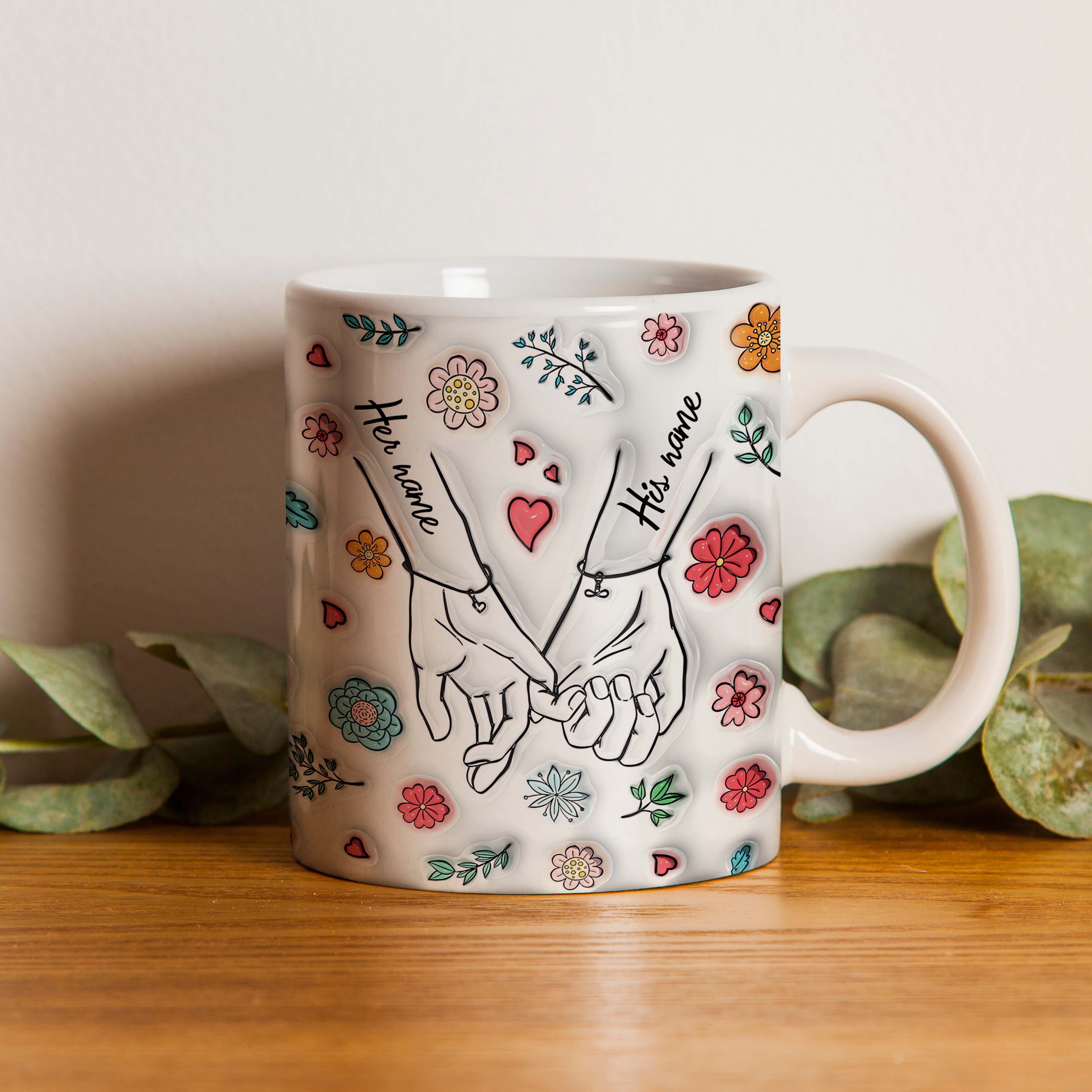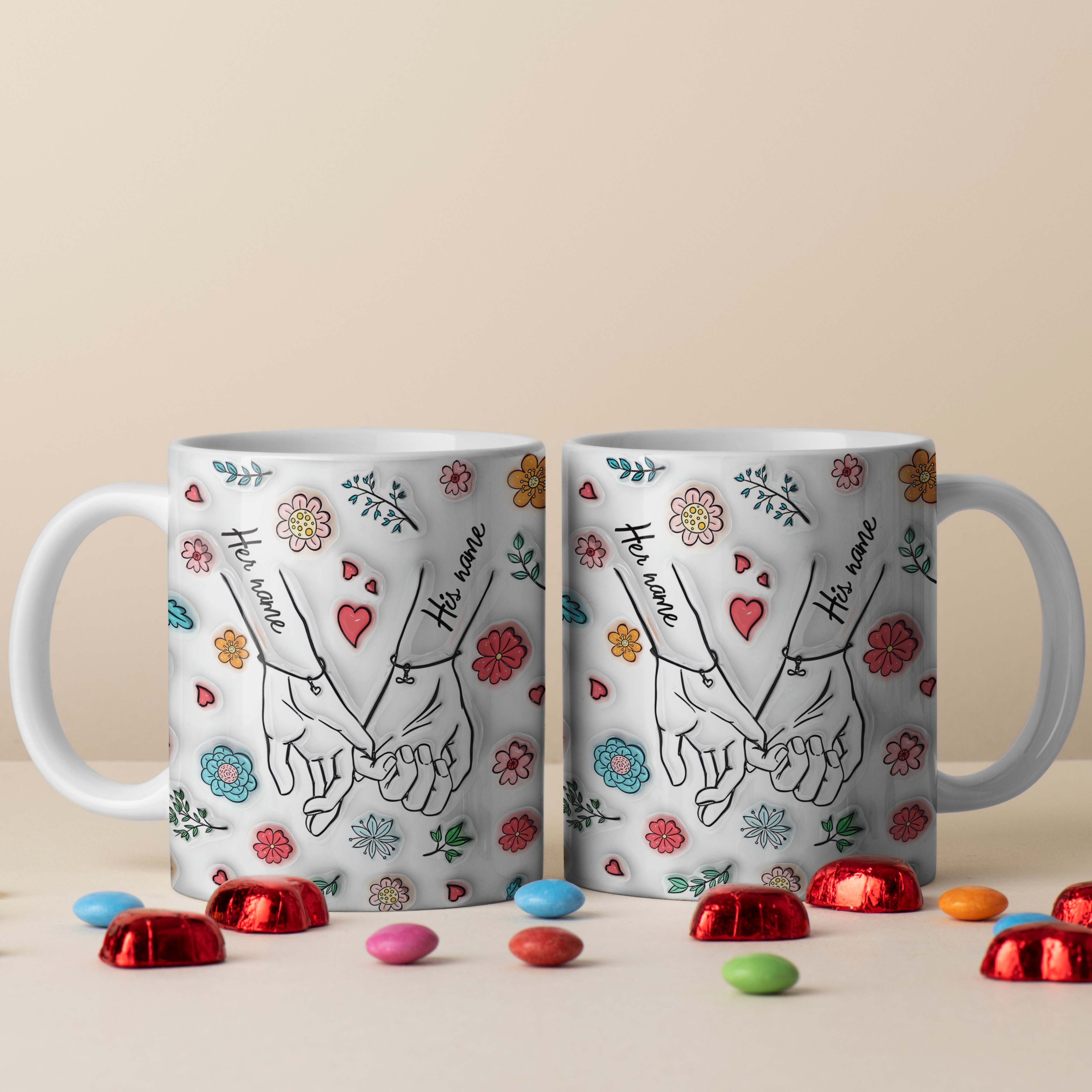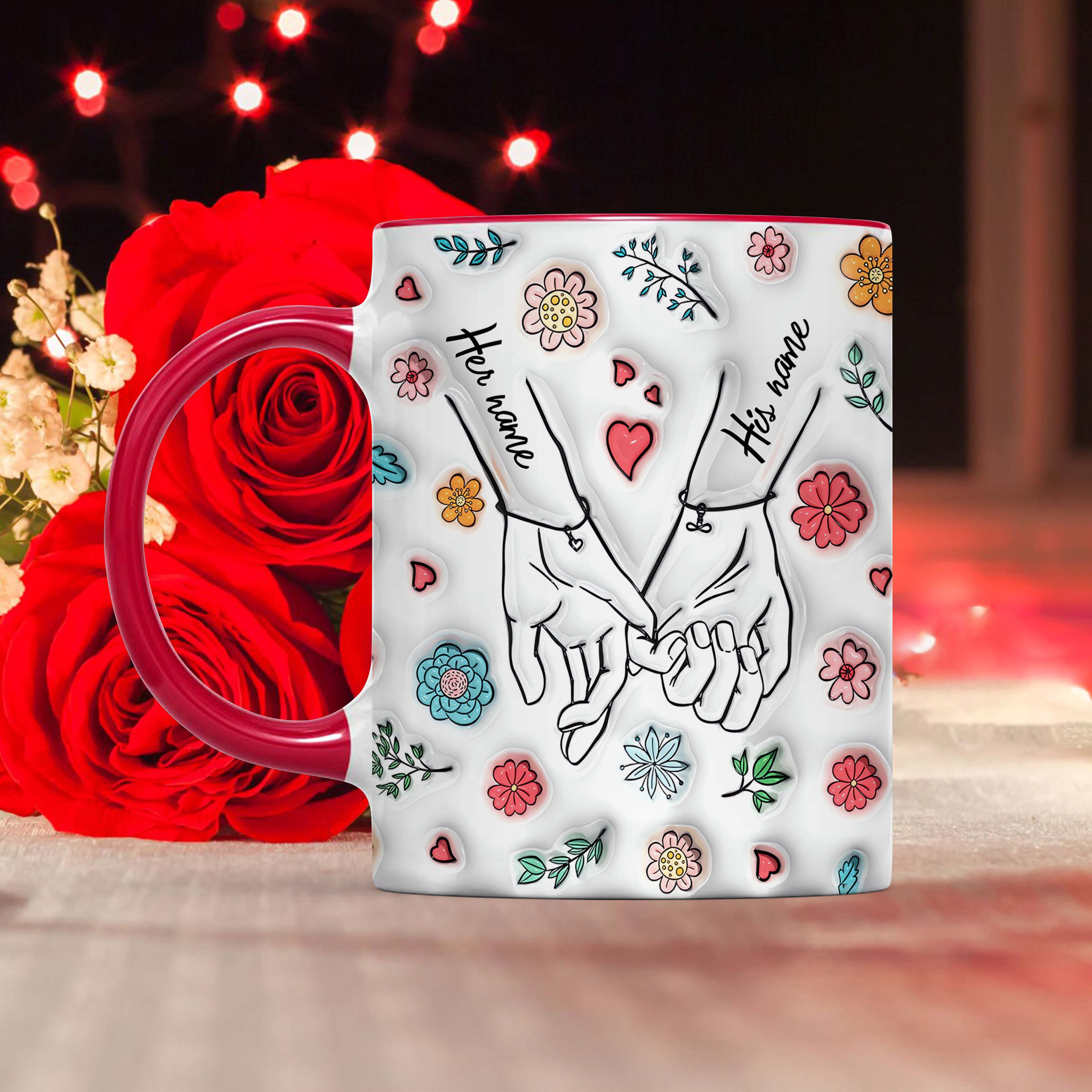 Holding Hand Custom Photo Accent Mug, Valentine Coffee Mug, Couple Mug, Valentine's Day Gift