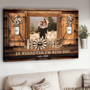 Home Is Where I’m With You Custom Photo Couple Canvas Wall Art, Valentine Gift For Couple
