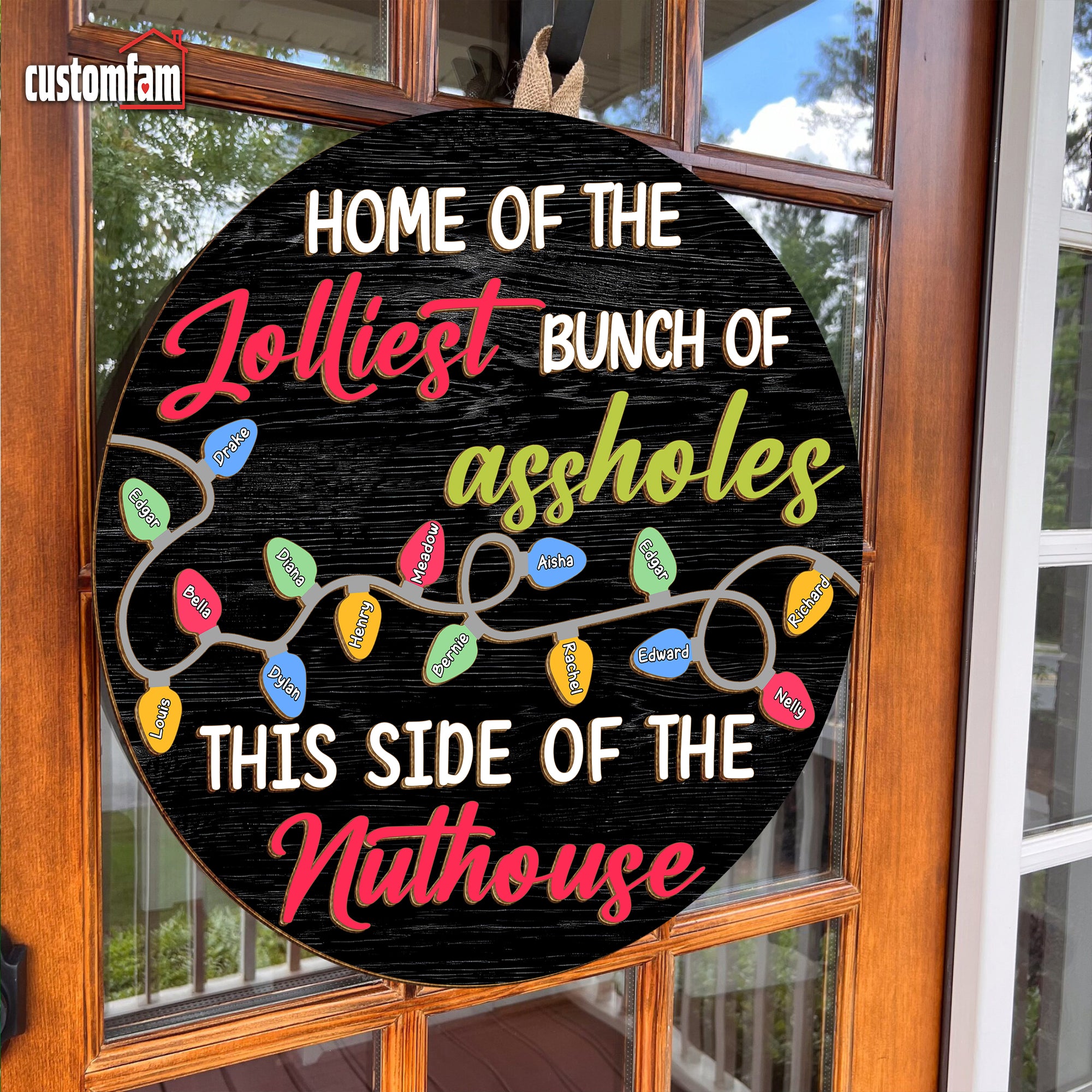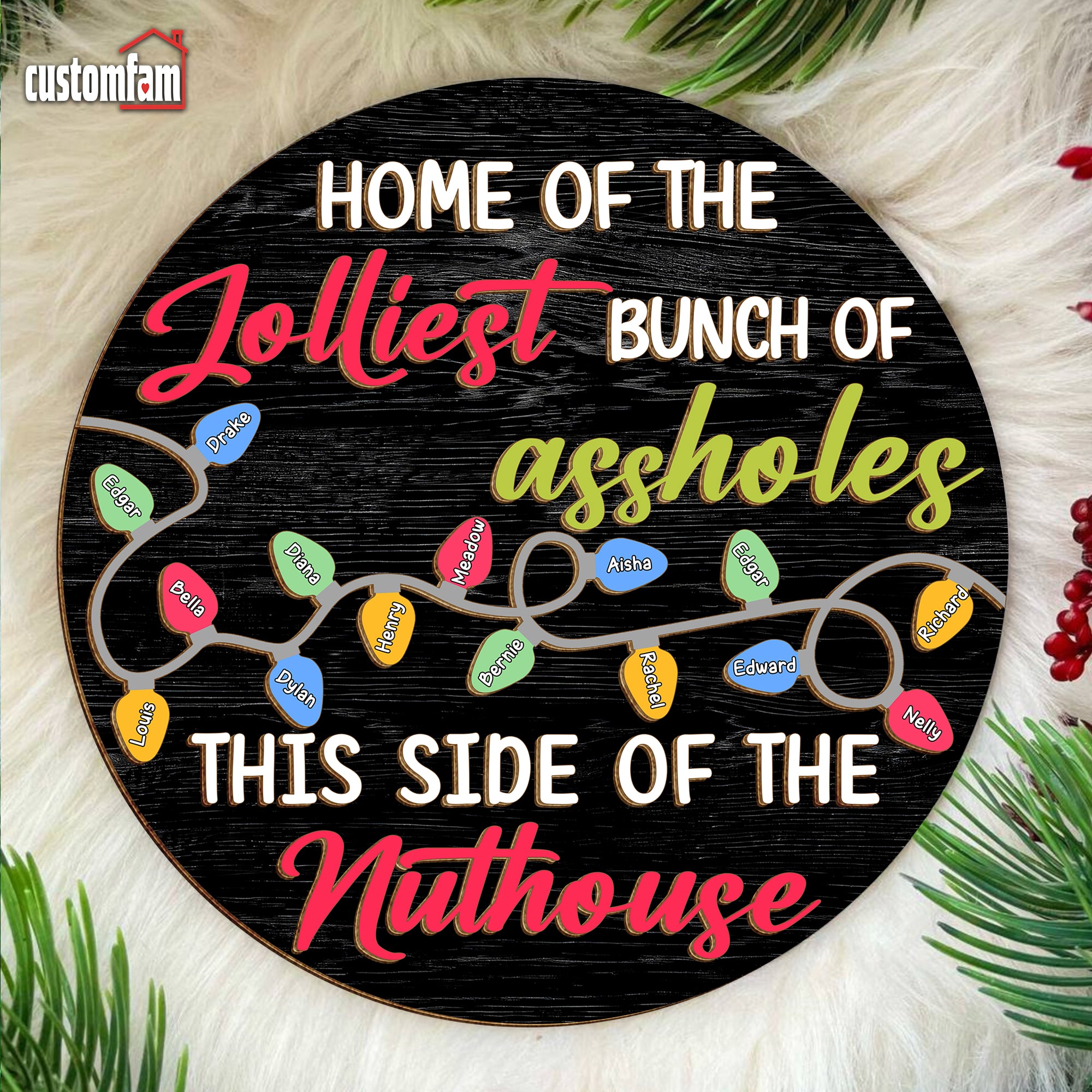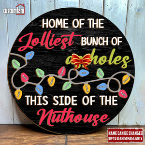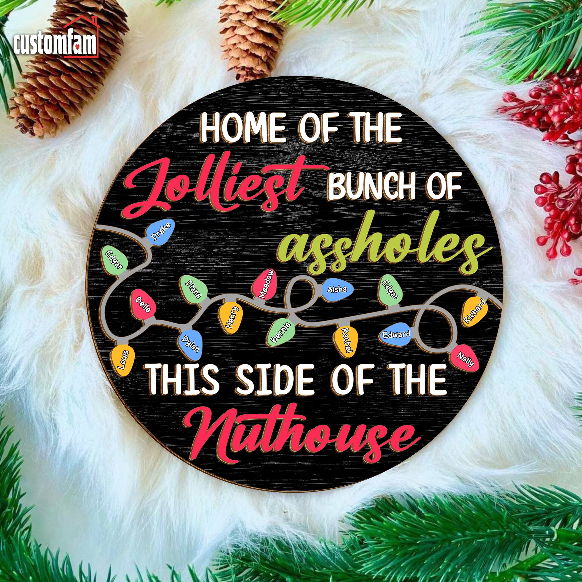 Home Of The Jolliest Bunch Custom Name Christmas Wood Sign, Christmas Home Decor
