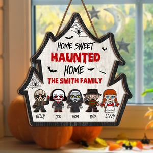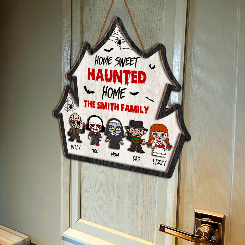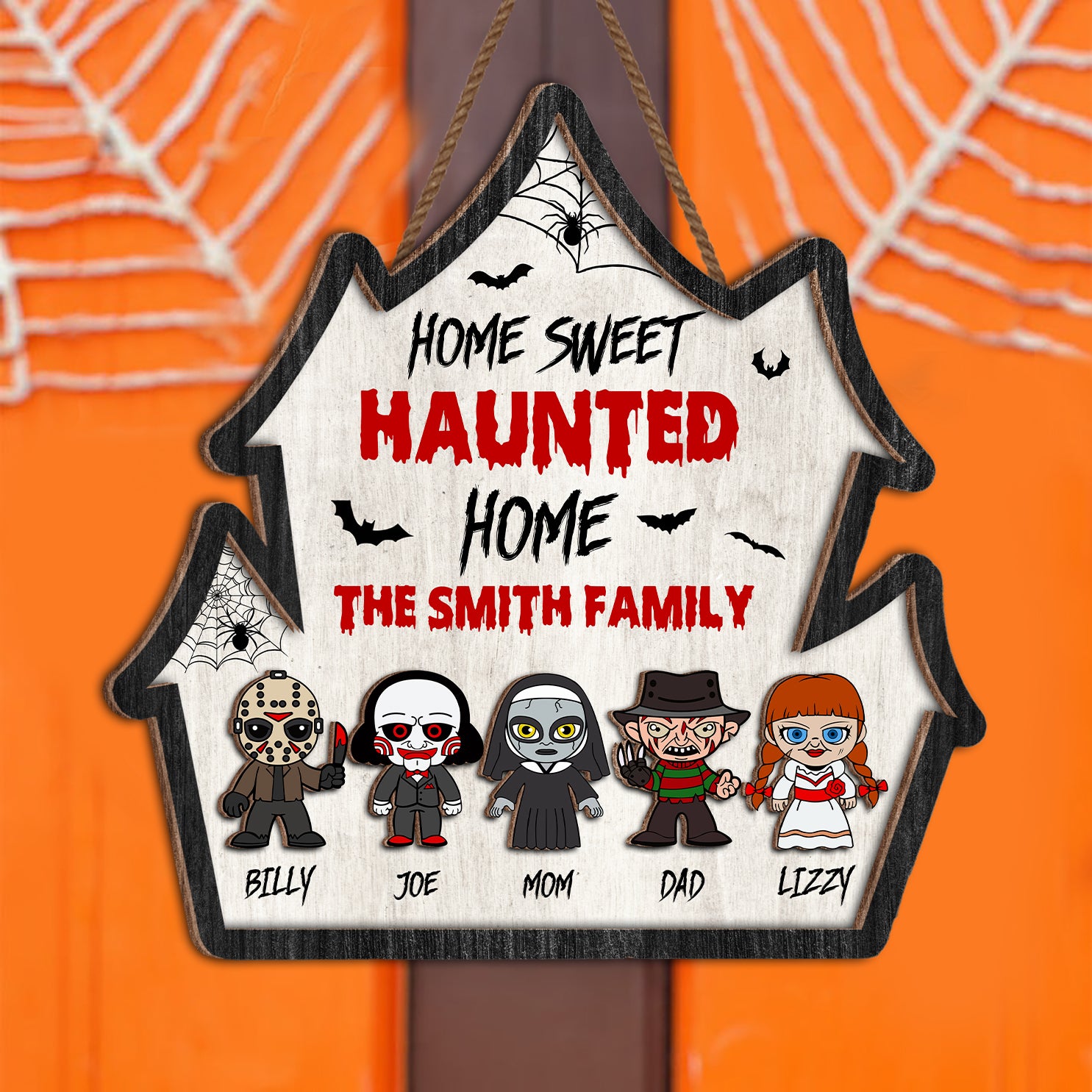 Home Sweet Haunted Home Personalized 2 Layered Halloween Horror Wood Door Sign, Horror Fan Gifts