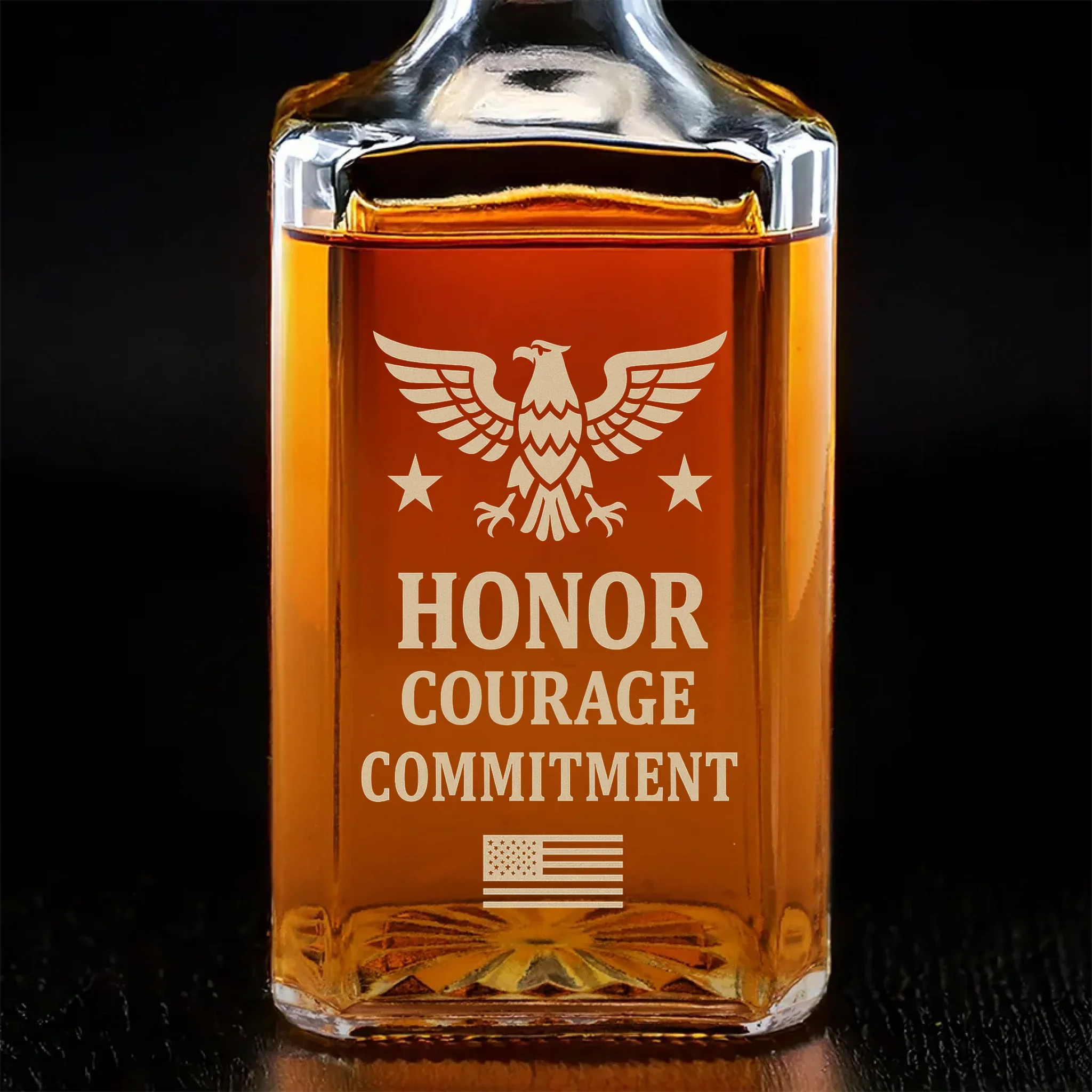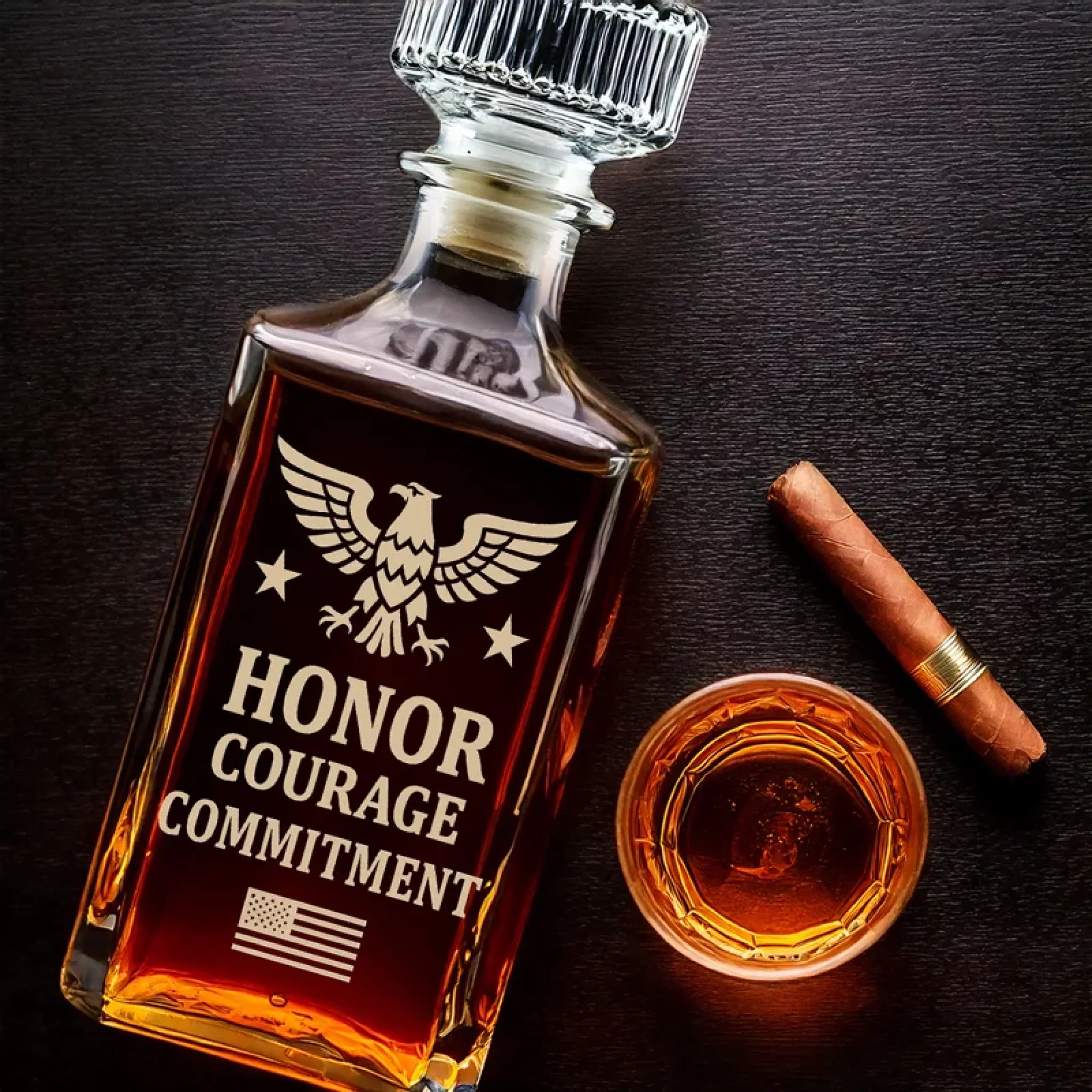 Honor, Courage, And Commitment Whiskey Decanter Set American Glassware Wine Glasses Set