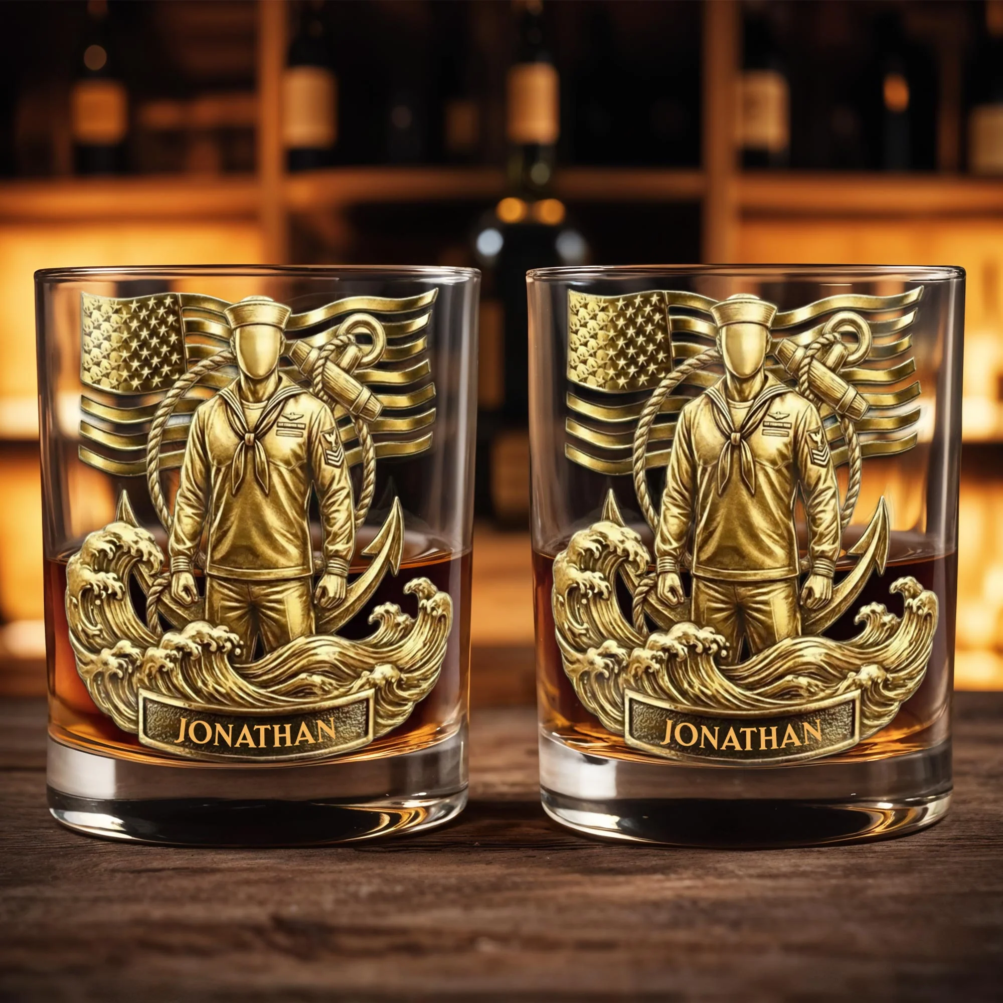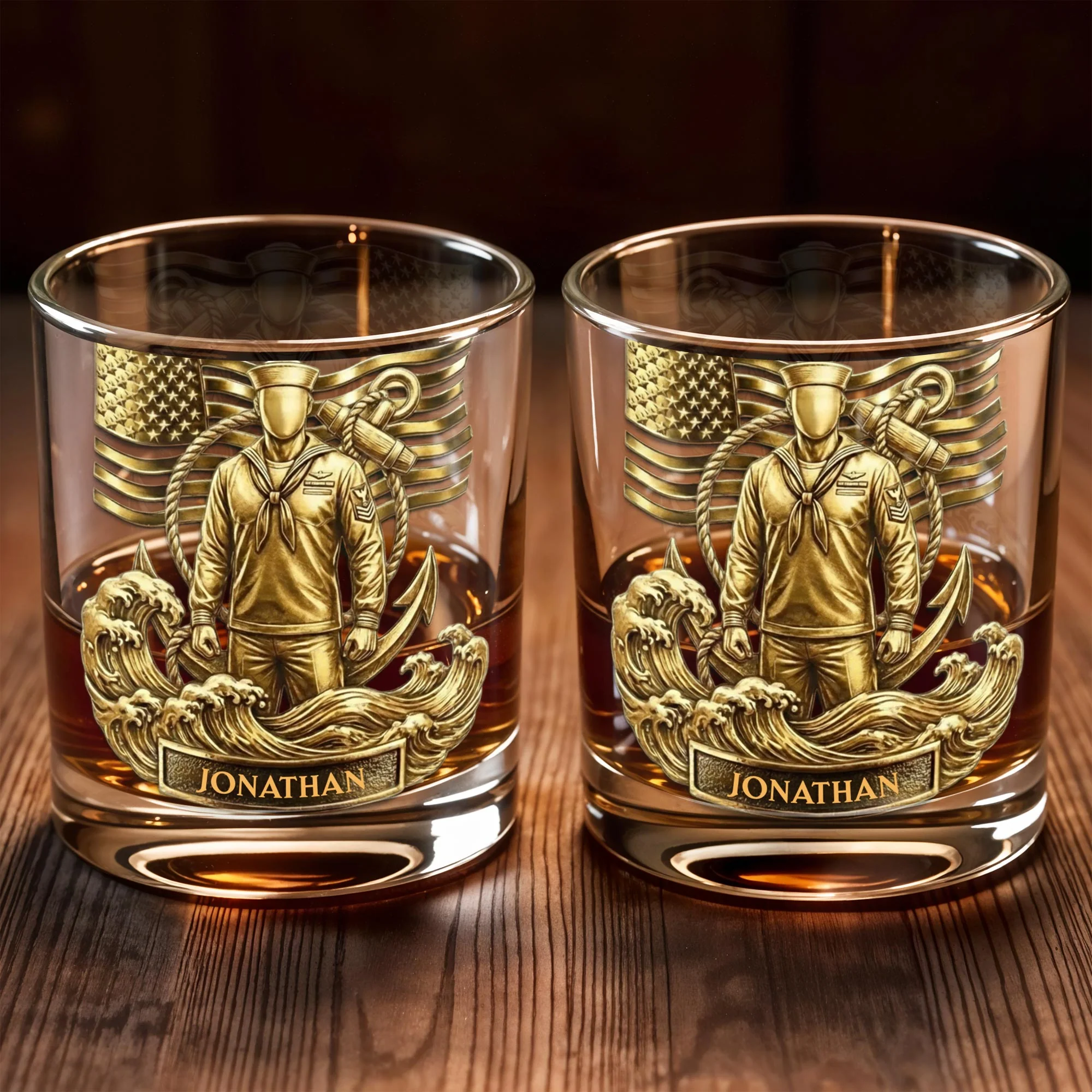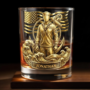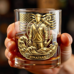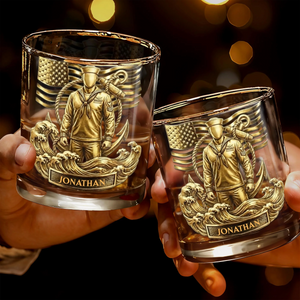 Honoring Our Heroes, American Flag And Military Figure, Personalized Custom Whiskey Glass, Gift For Veterans And Patriots