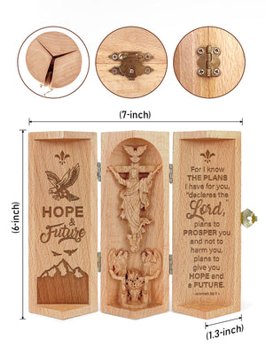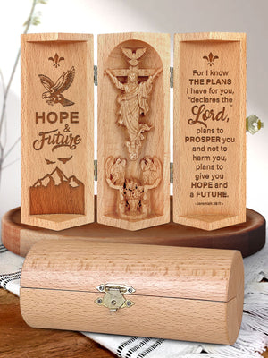Hope And Future, Openable Wooden Cylinder Sculpture of Jesus Christ, Christian Gifts