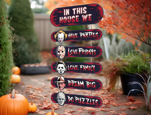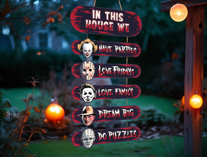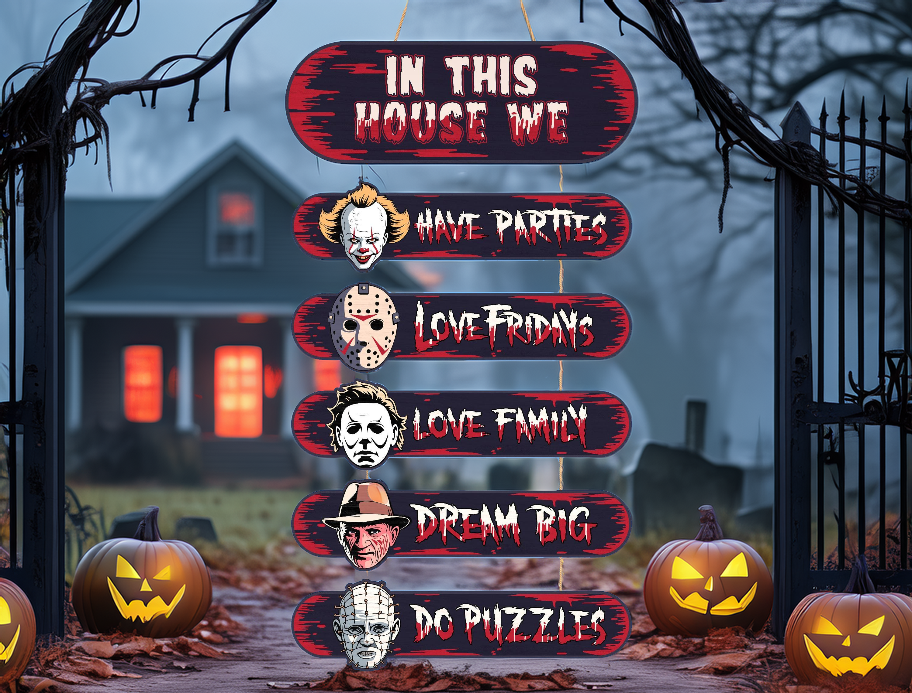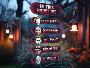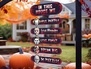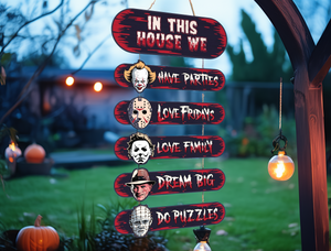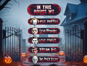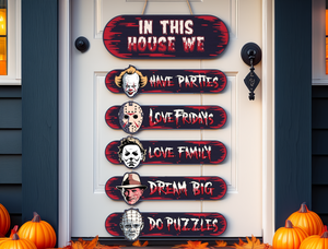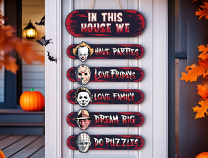 Horror House, Welcome Door Sign, Halloween Door Hanger, Creepy Halloween Characters, Halloween Decorations