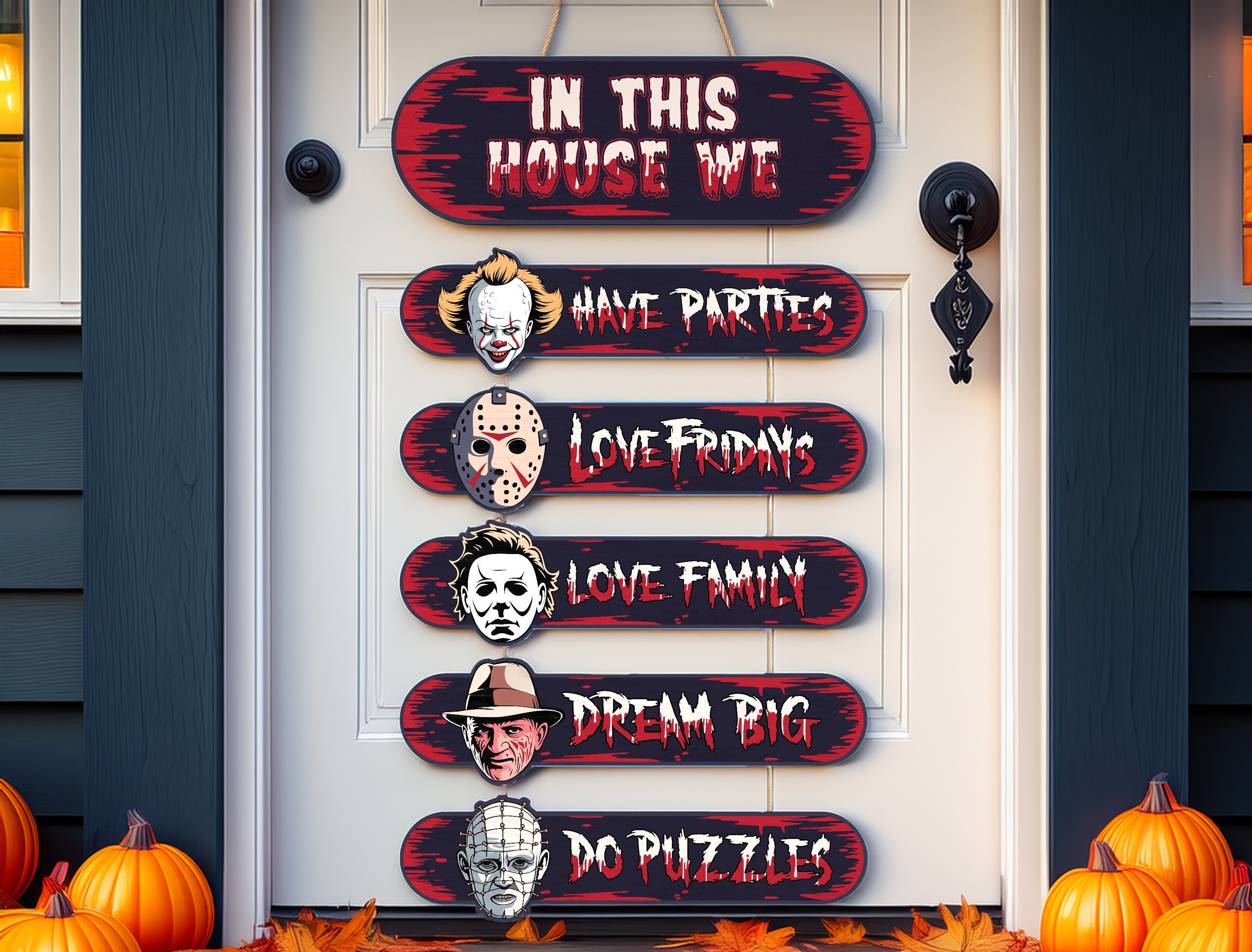 - Ideal for: Front porches, entryways, home decor, or as a gift for horror fans and Halloween lovers.