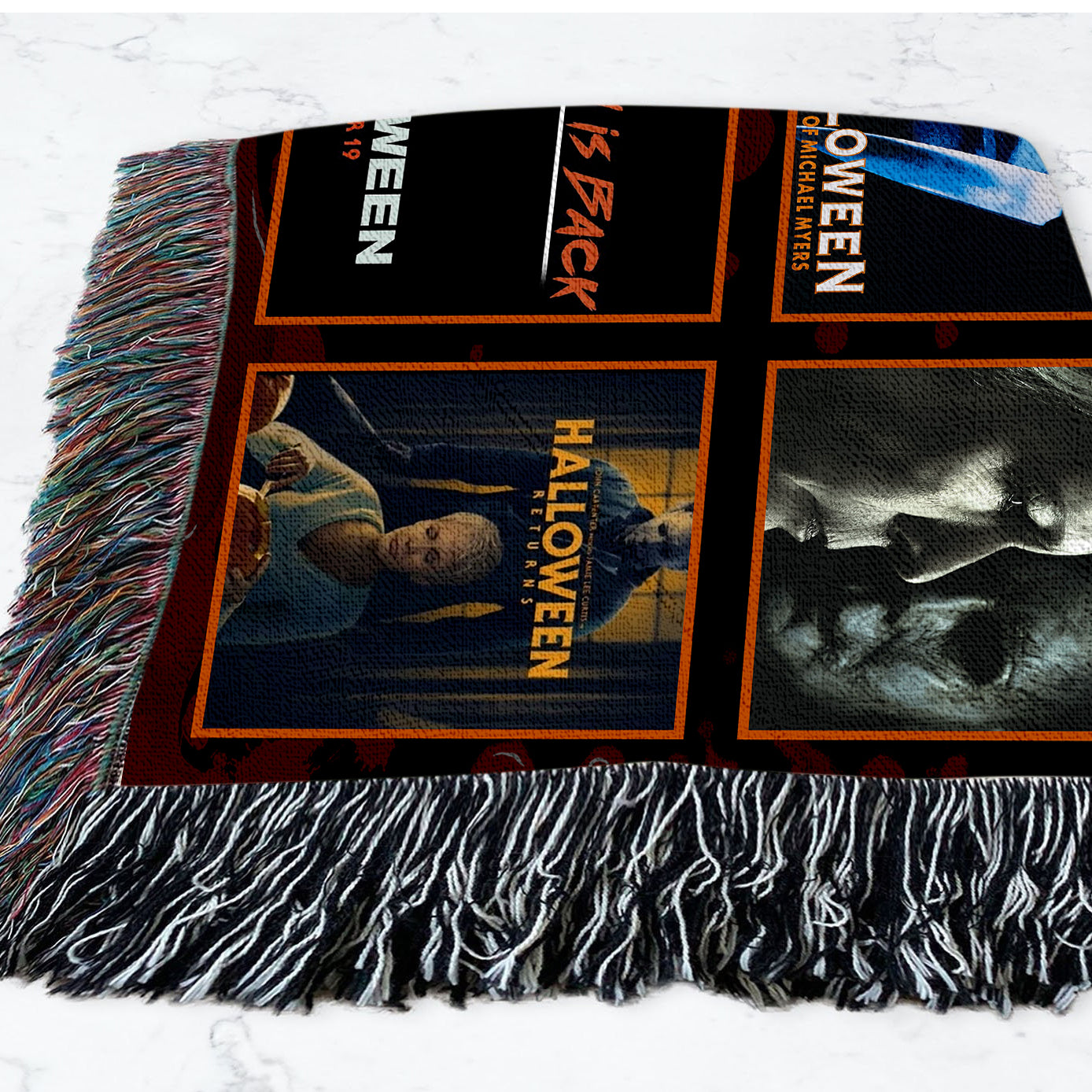 Horror Movie Character Woven Blanket, Scary Movies Gifts, Halloween Room Decor