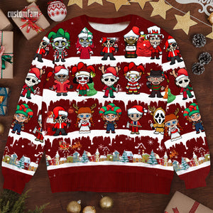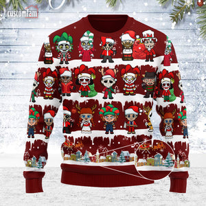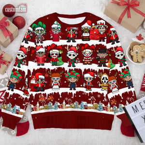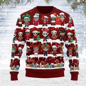 Horror Movie Characters Christmas Ugly Sweater, Gifts For Horror Fans