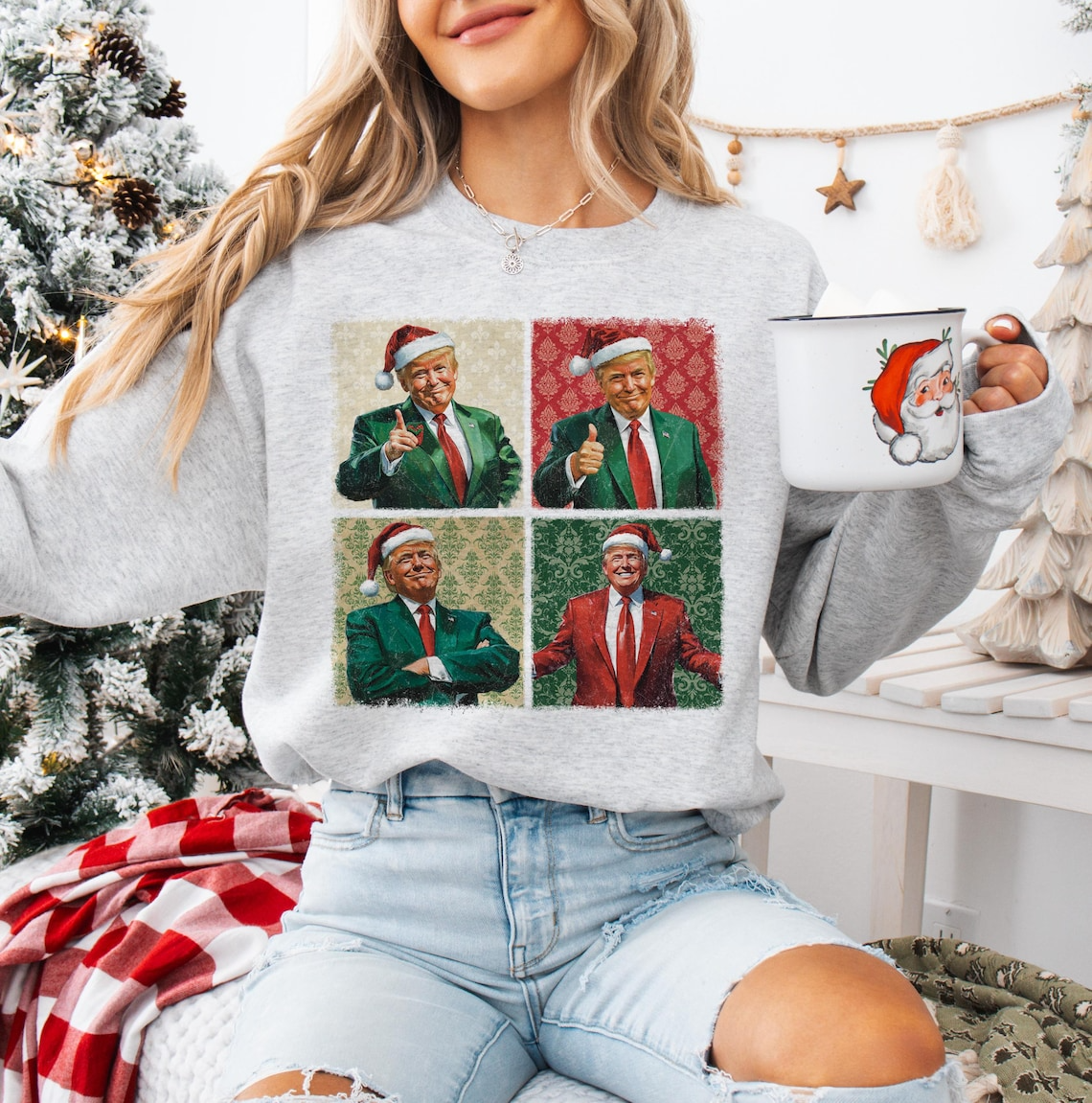 Humor Funny Trump2024 Boho Style Christmas Sweatshirt, Funny Political Shirts