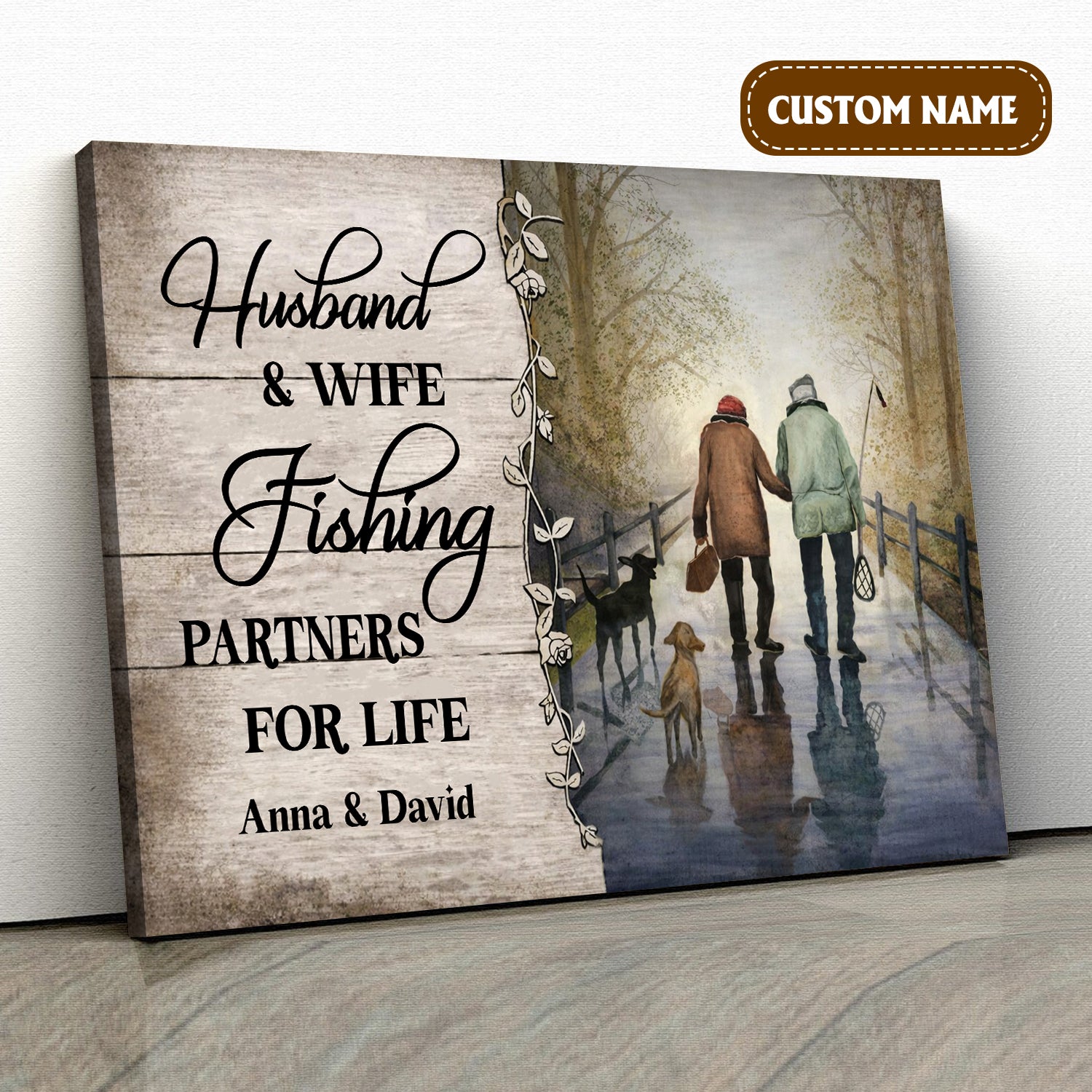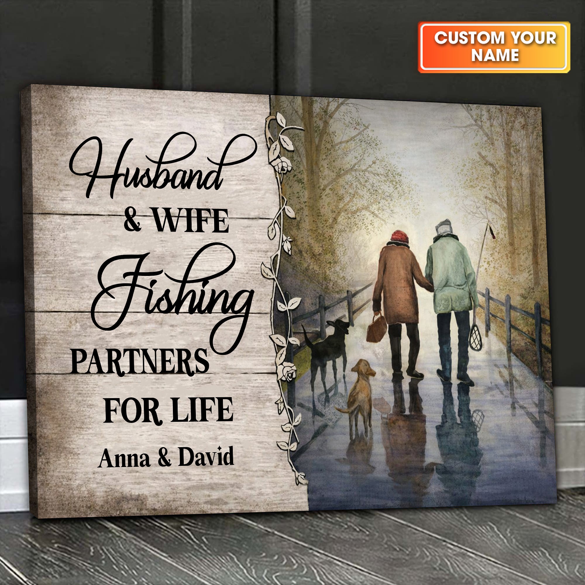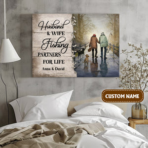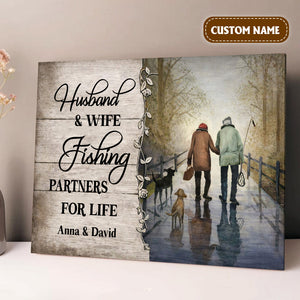 Husband And Wife Fishing Partners For Life Canvas Wall Art, Unique Valentine's Day Gifts, Couple Anniversary Gift