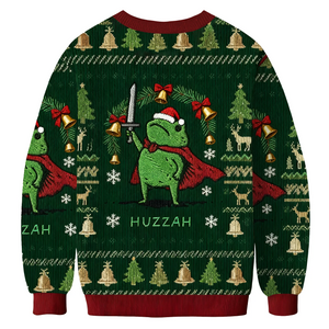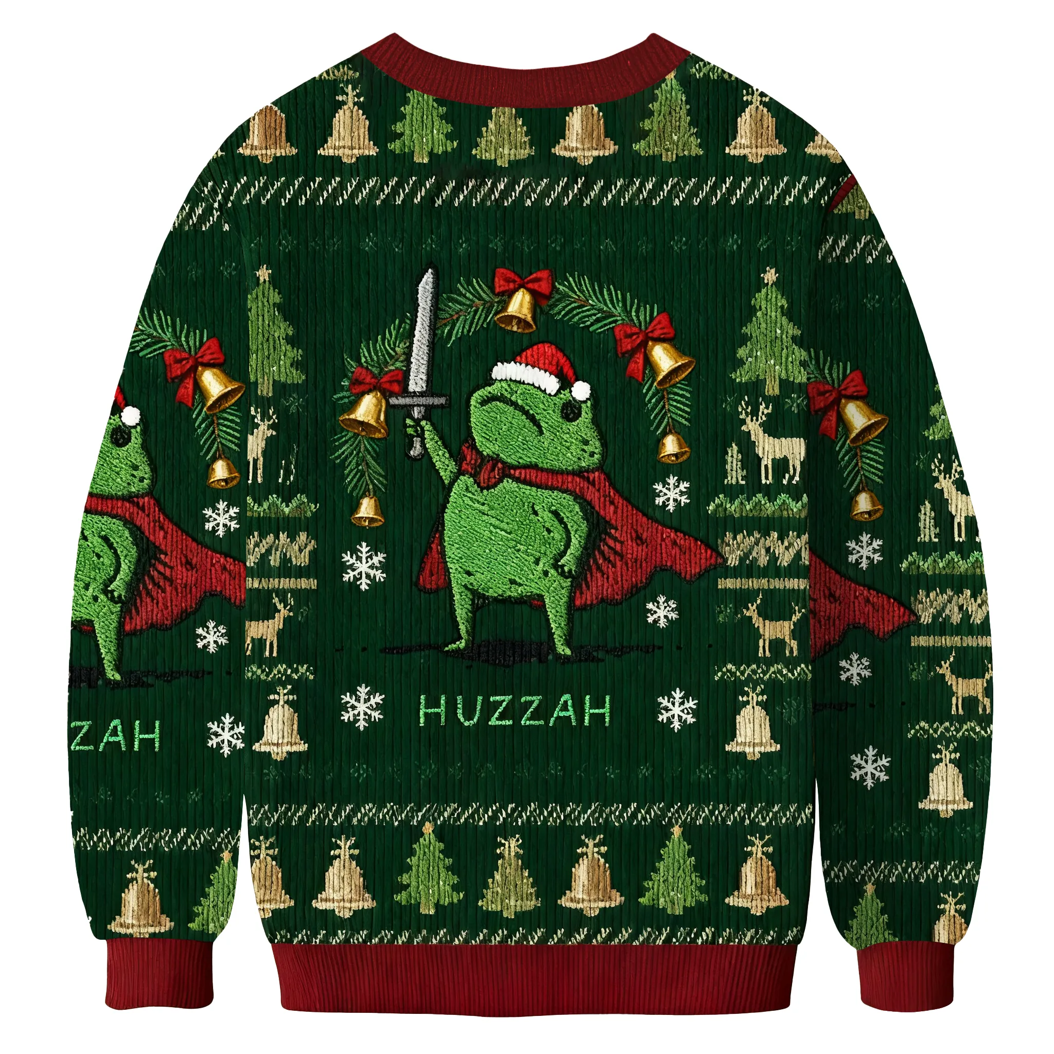 Huzzah Frog With Sword Funny Ugly Sweater, Ugly Xmas Sweater, Christmas Ugly Sweatshirt