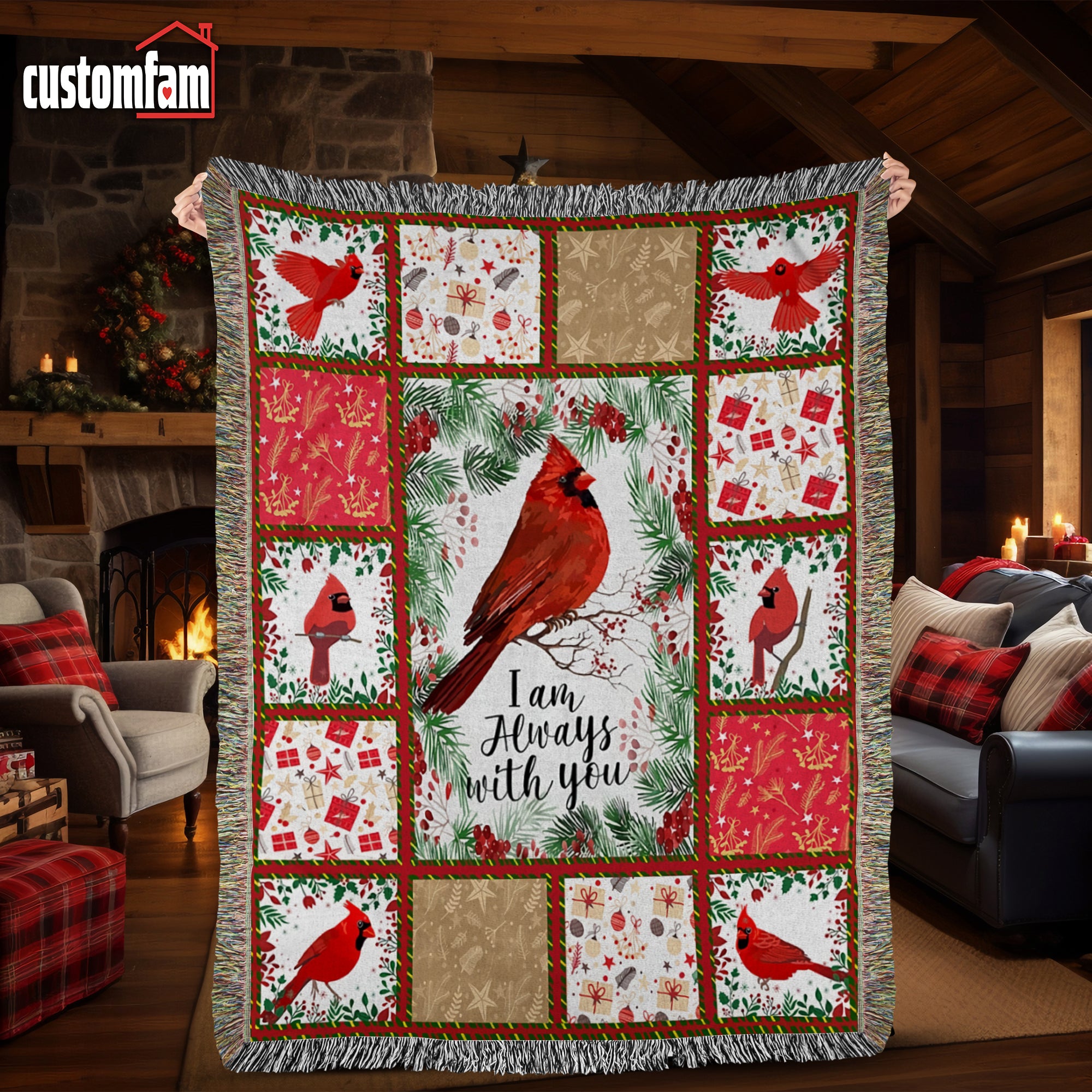 I Am Always With You Personalized Christmas Cardinal Blanket, Memorial Gifts