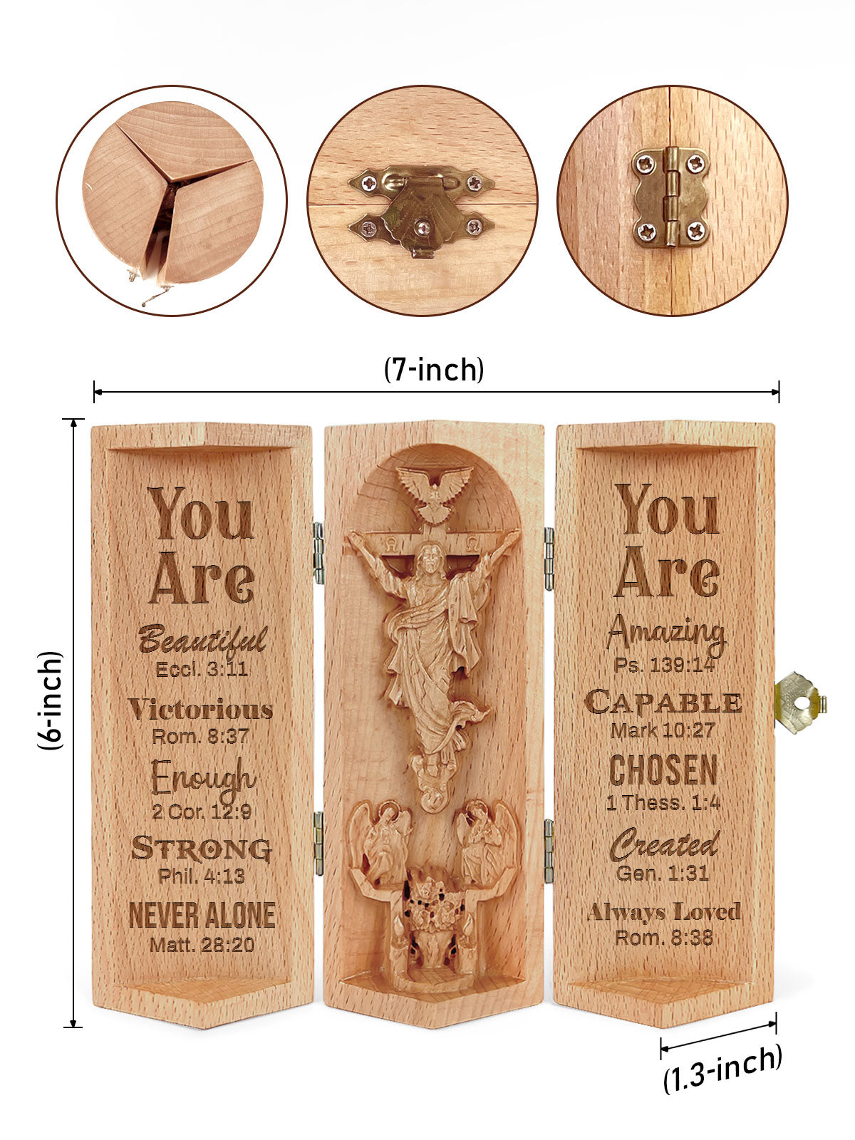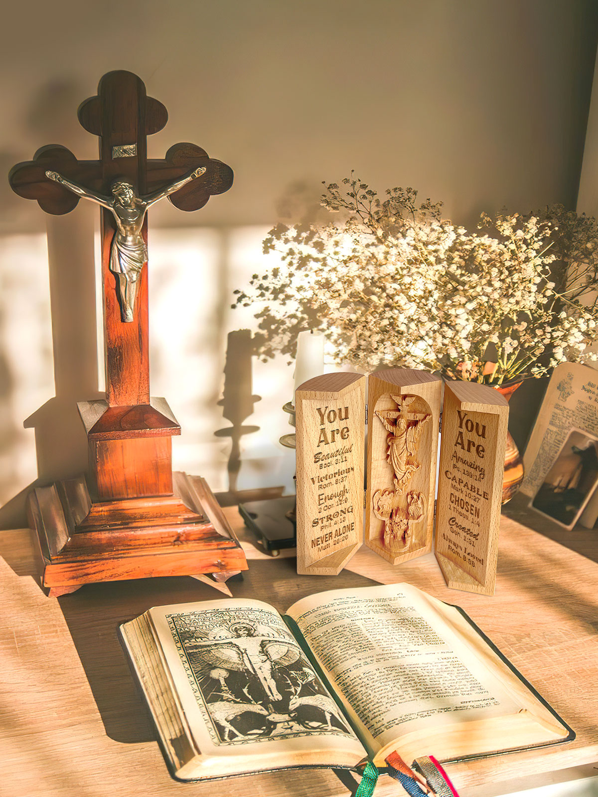 Uplifting Bible Verse Personalized Openable Wooden Cylinder Sculpture Of Jesus Christ, Christ Decor