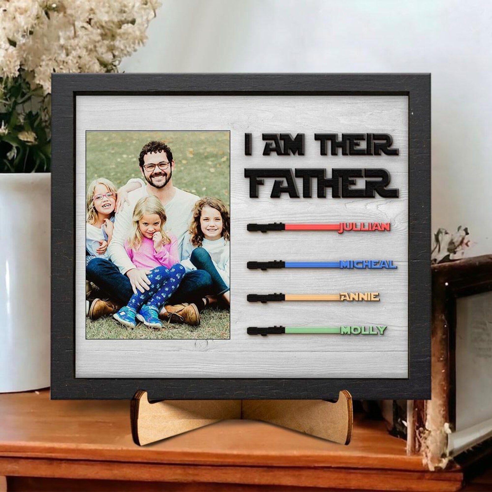 I Am Their Father Custom Picture Frame, Star Wars Lightsaber Wood Sign, Gift for Dad