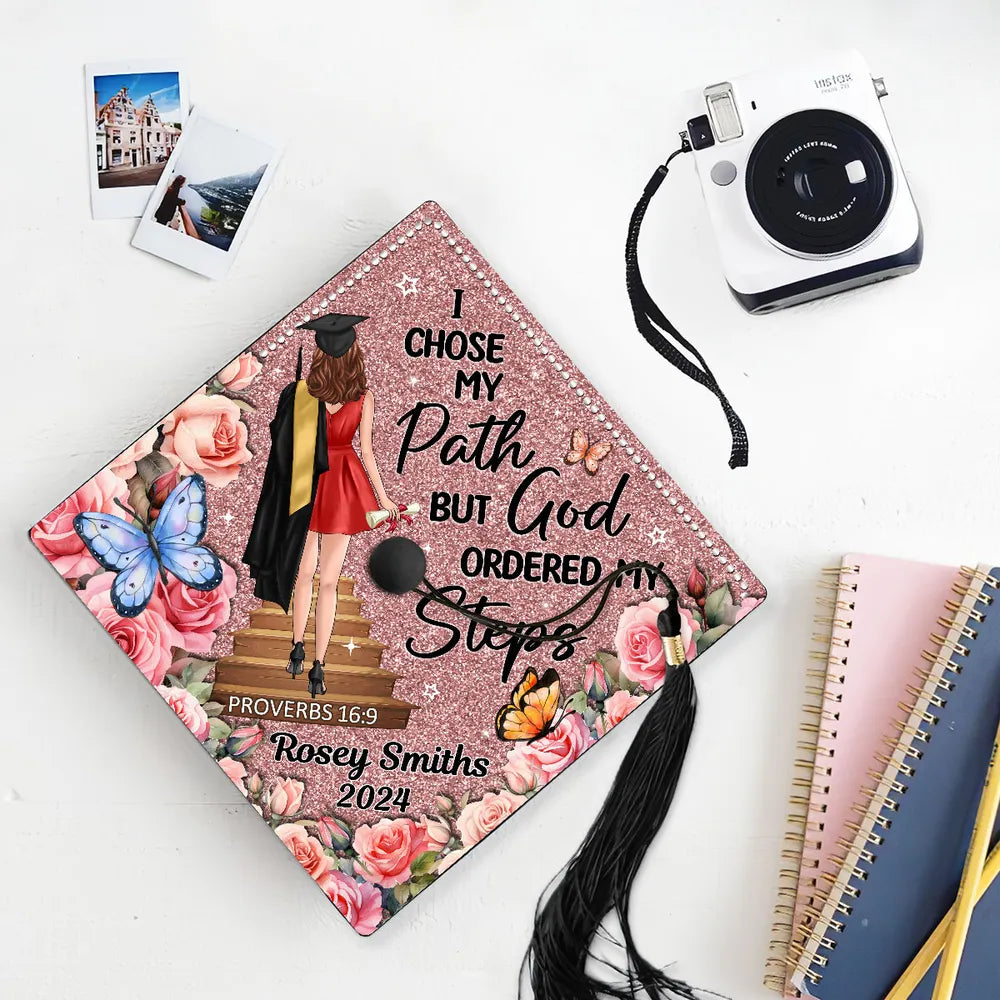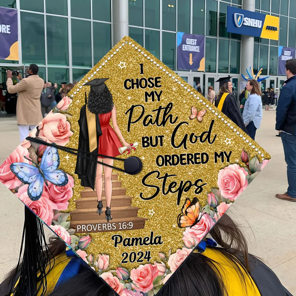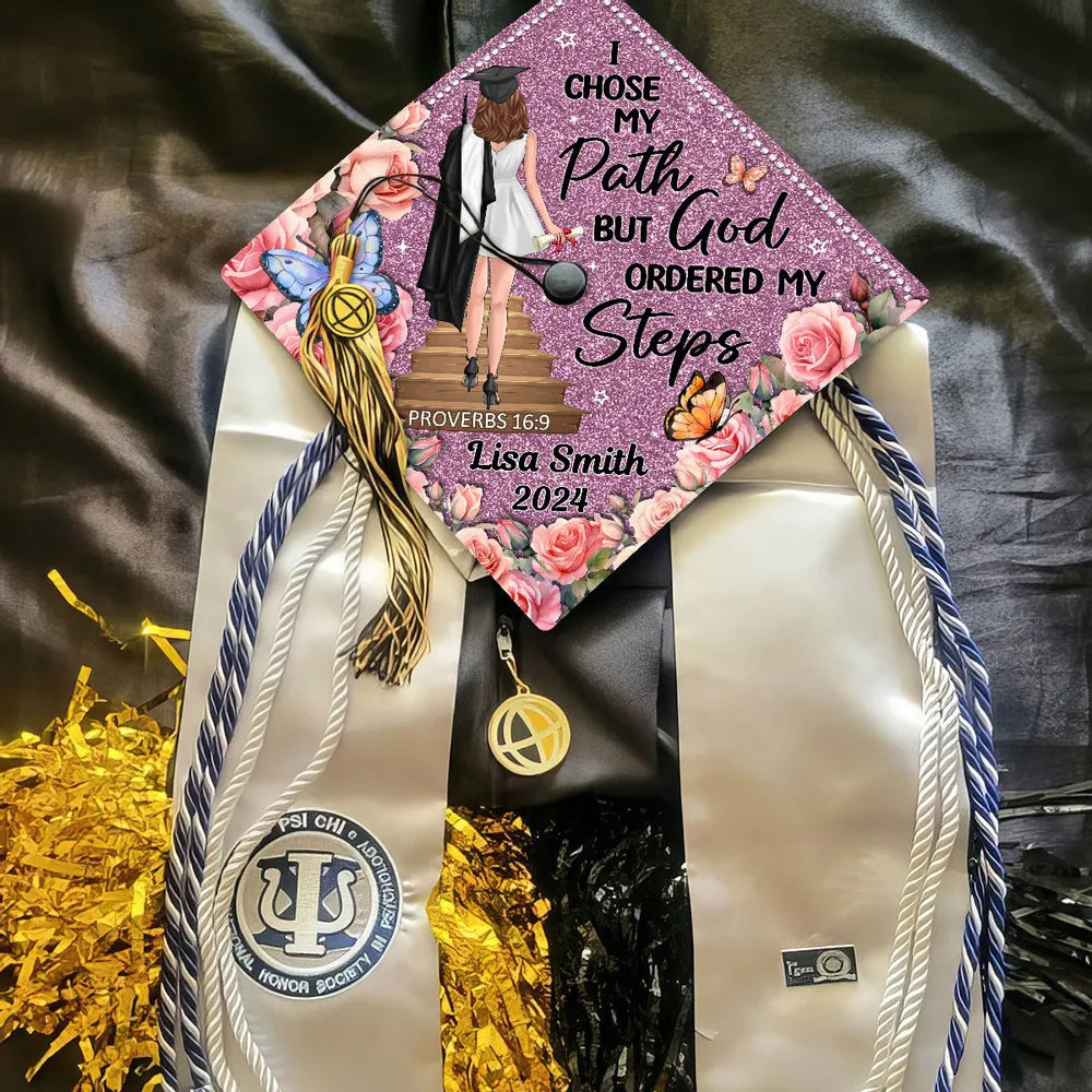 I Chose My Path But God Ordered My Steps Custom Graduation Cap Topper, Gift For Graduates