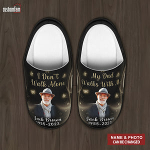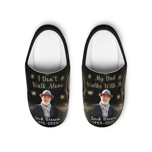 I Don't Walk Alone My Dad Walks With Me Personalized Fluffy Slippers, Memorial Gift