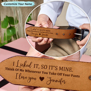 I Licked It So It's Mine Personalized Engraved Mens Leather Belt, Belts For Him