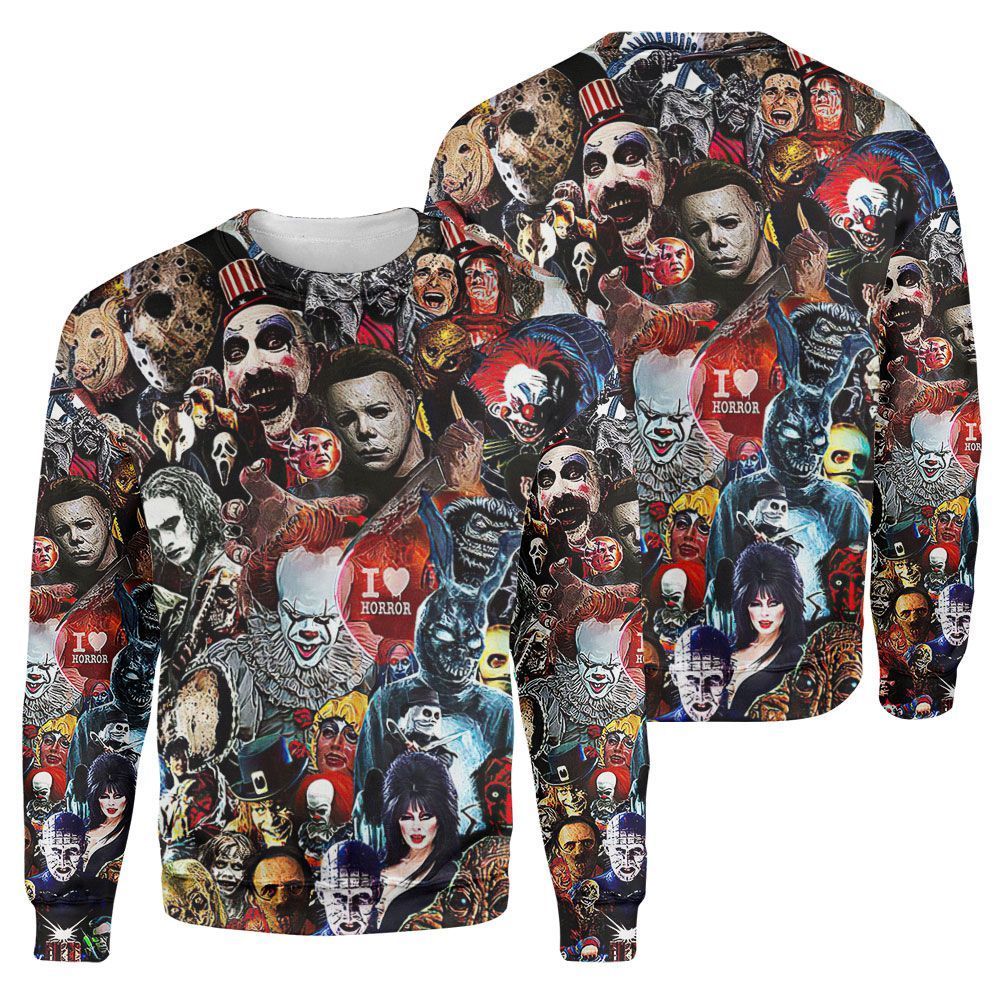 An unexpected but equally creepy gift for Halloween. Perfect for horror movie enthusiasts and Halloween fanatics, this cozy sweatshirt makes a fantastic addition to your wardrobe.