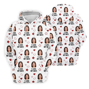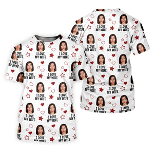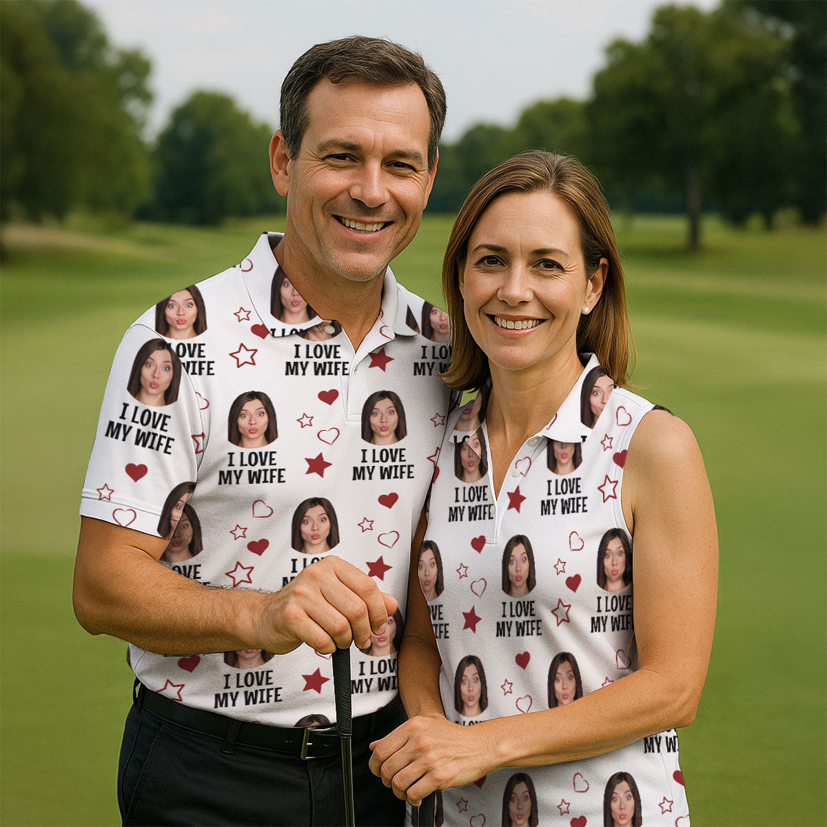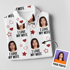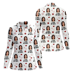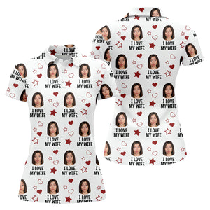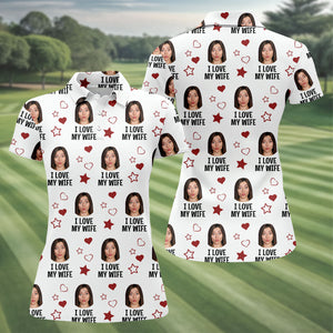 I Love My Husband Custom Face White Golf Shirt, Fun Women's Golf Shirts, Valentines Golf Gift, Ladies Golf Shirts