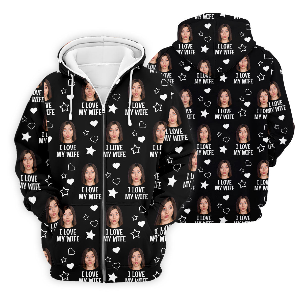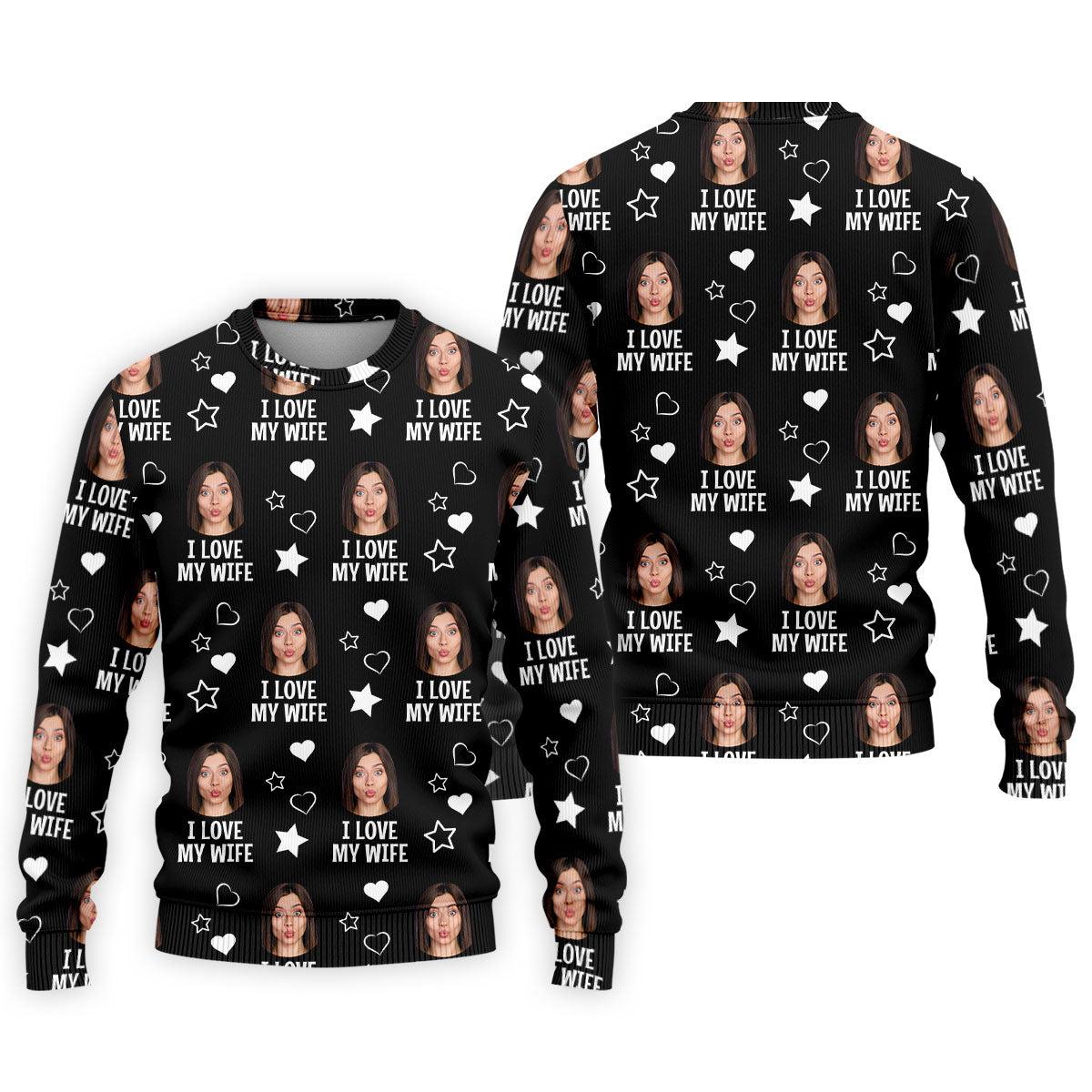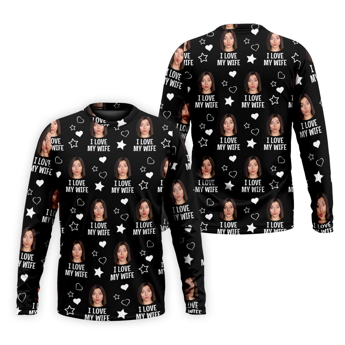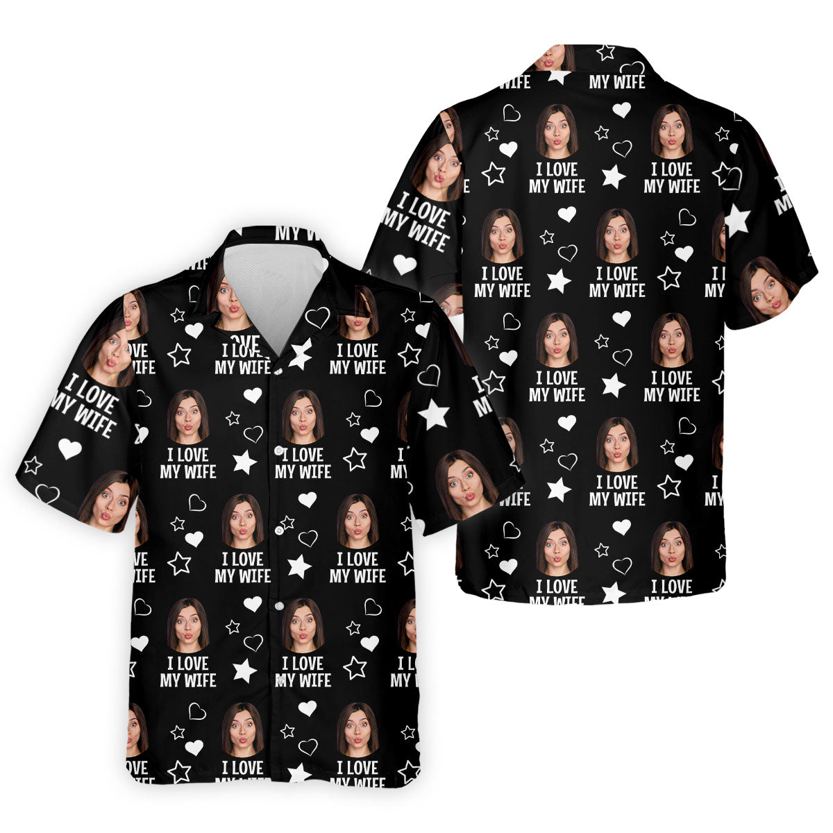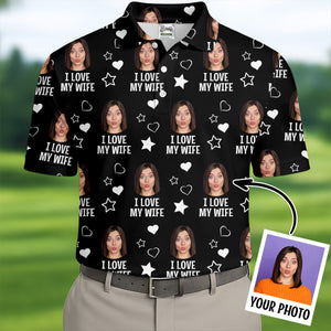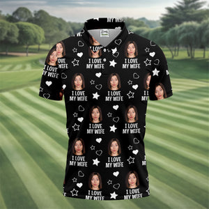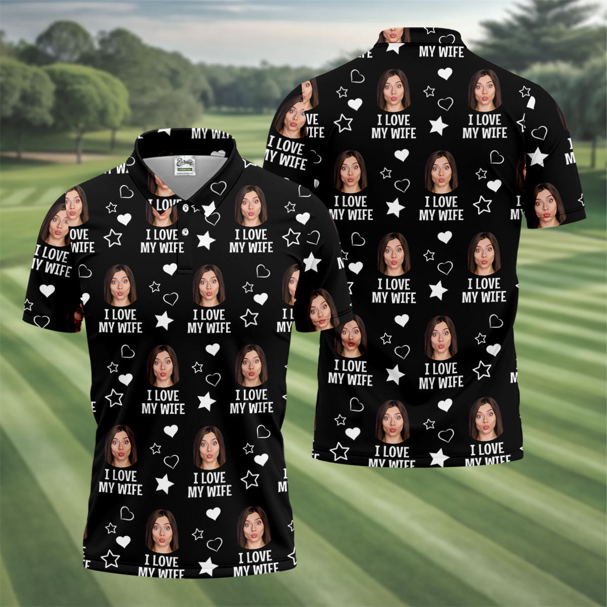 I Love My Wife Custom Face Black Golf Shirt, Fun Golf Shirts For Men, Valentines Golf Gift, Polo Shirts For Men