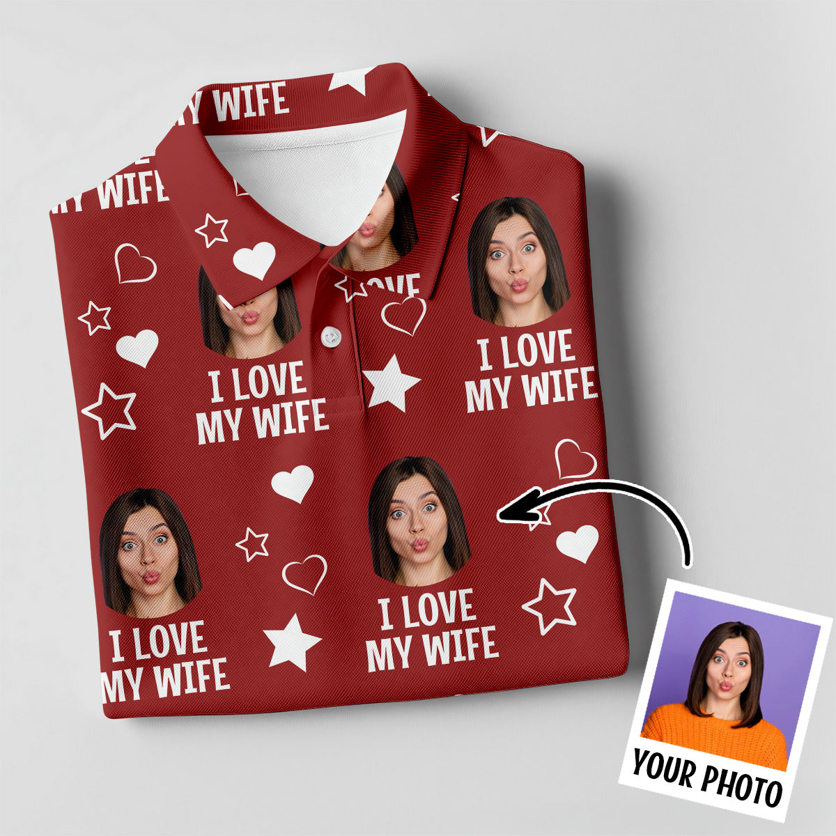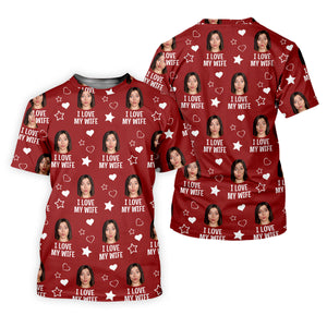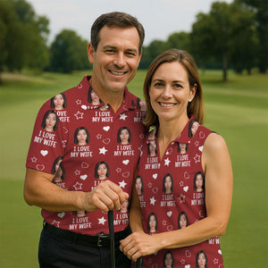 I Love My Wife Custom Face Red Golf Shirt, Fun Golf Shirts For Men, Valentines Golf Gift, Polo Shirts For Men