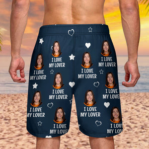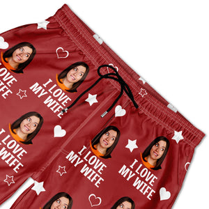 I Love My Wife Custom Photo Funny Shorts, Men Beach Shorts, Gift For Husband, Couple Gifts