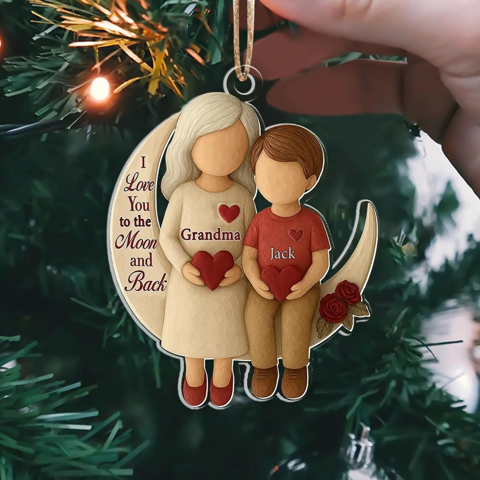 I Love You to the Moon and Back Grandma And Grandchild Custom Name Acrylic Ornament, Family Christmas Decor