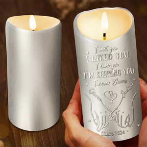 I Met You I Liked You I Love You Holding Hand Personalized LED Candle, Couple Valentines Gifts