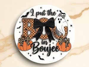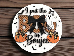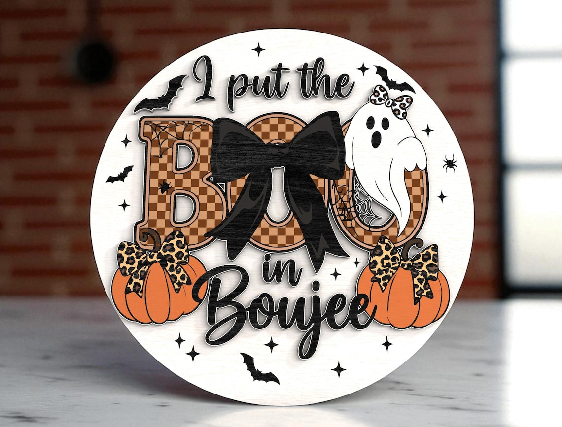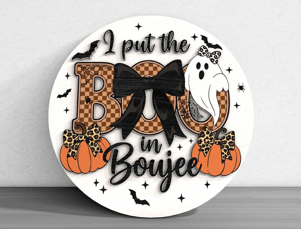 I Put The Boo In Boujee Leopard Print Bows Wood Signs Outdoor, Halloween Door Decoration Ideas