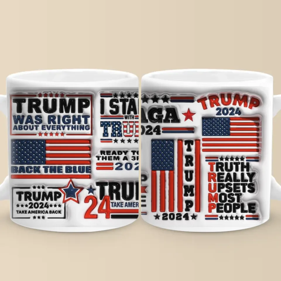 Show your unwavering support for President Trump in 2024 with this bold and eye-catching I Stand With Trump 2024 3D Inflated Effect Printed Mug. Designed for true patriots, this mug features a unique 3D effect that adds a fun, dynamic touch to your daily coffee routine. Perfect for enjoying your favorite beverage while making a statement, it’s the ultimate mug for Trump supporters who want to express their political passion with every sip.