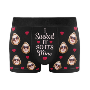I Sucked It So It's Mine Custom Photo Boxer Briefs, Funny Mens Underwear, Men's Boxers, Valentine Gift Ideas For Him