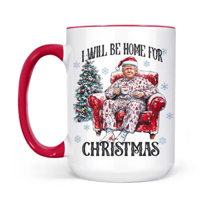 I Will Be Home For Christmas Trump2024 US President Funny Christmas Mug, Christmas Accent Mug