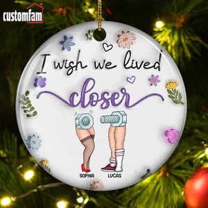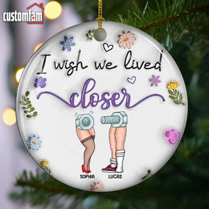 I Wish We Lived Closer Personalized Nut And Screw Ceramic Ornament, Christmas Gift For Couple