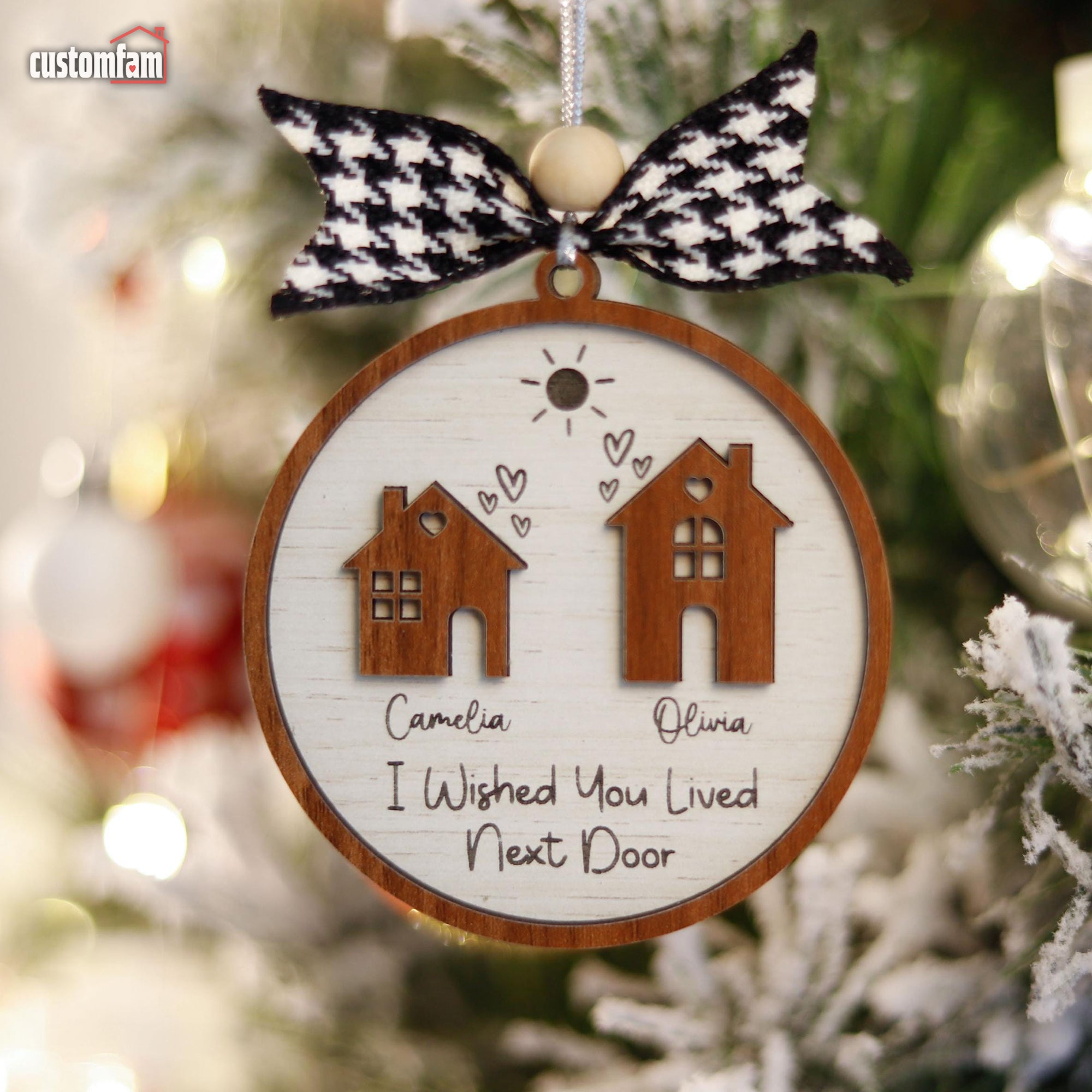 Celebrate the bond between siblings, even when distance separates you, with our “I Wished You Lived Next Door” Personalized Sibling Ornaments. Perfect for siblings living far apart, these heartfelt ornaments capture the love and connection shared, making them a meaningful gift for the holiday season or as a thoughtful gesture for those studying abroad.