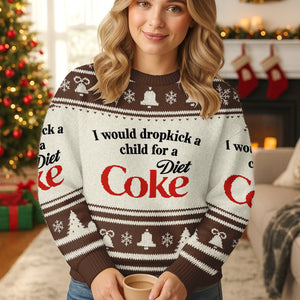 I Would Dropkick A Child For A Diet Coke Brown Ugly Sweater, Christmas Ugly Sweatshirt