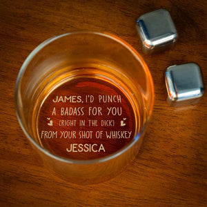I'd Punch A Badass For You Whiskey Glass - Funny Glassware, Couples Wine Glasses, Valentine Gifts for Him