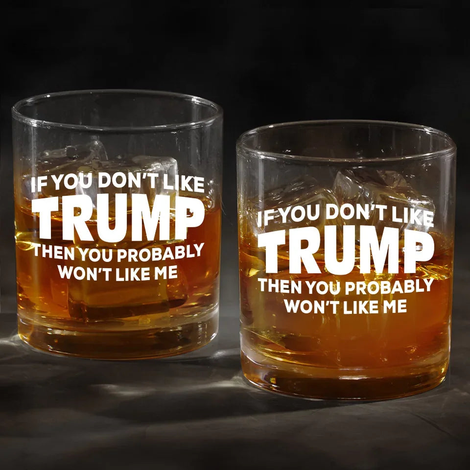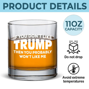 If You Don't Like Trump Funny Whiskey Glass, Double Old Fashioned Glass, Cool Christmas Gifts For Dad