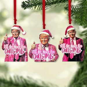 Pink Trump I'll Be Home For Christmas, Humorous Trump Christmas Acrylic Ornament | Perfect for Car & Christmas Tree Decor.