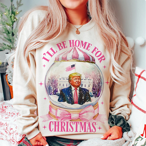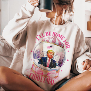 Get into the holiday spirit with a dose of humor and patriotism in the Funny Trump "I'll Be Home For Christmas" Sweatshirt! This lighthearted and bold sweatshirt is perfect for Trump supporters who want to celebrate the season with a fun twist. Featuring the classic "I'll Be Home For Christmas" slogan with a humorous political twist, it’s a perfect way to showcase your support for President Trump while spreading holiday cheer. Whether you’re celebrating with family, attending a political event, or just enjoying some downtime, this sweatshirt brings warmth, comfort, and laughter to your festive wardrobe.
