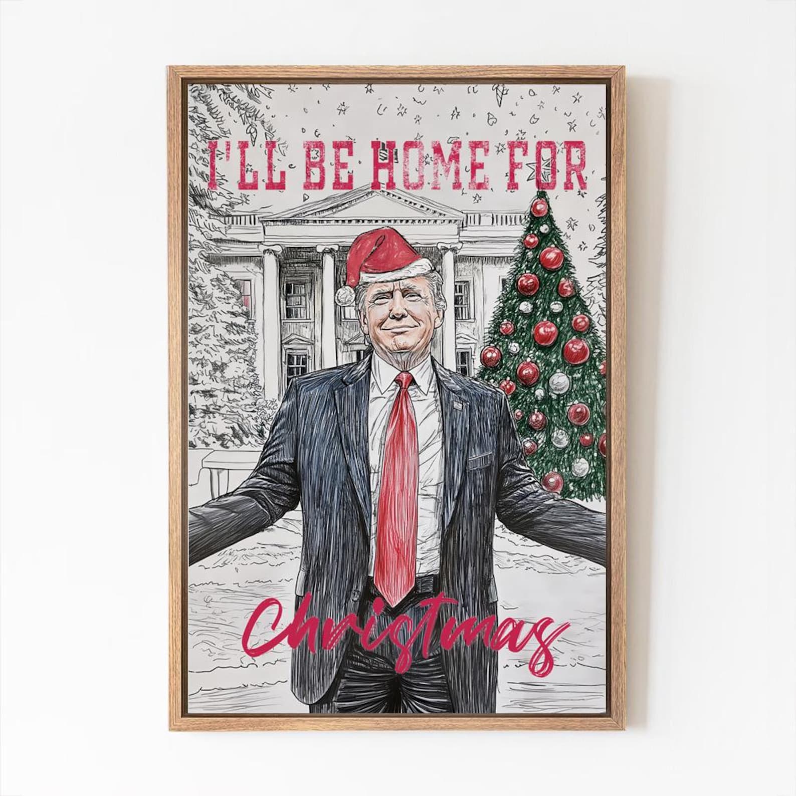 I'll Be Home For Christmas Trump2024 Canvas Wall Art, Vintage Funny Humorous, Patriots Gifts