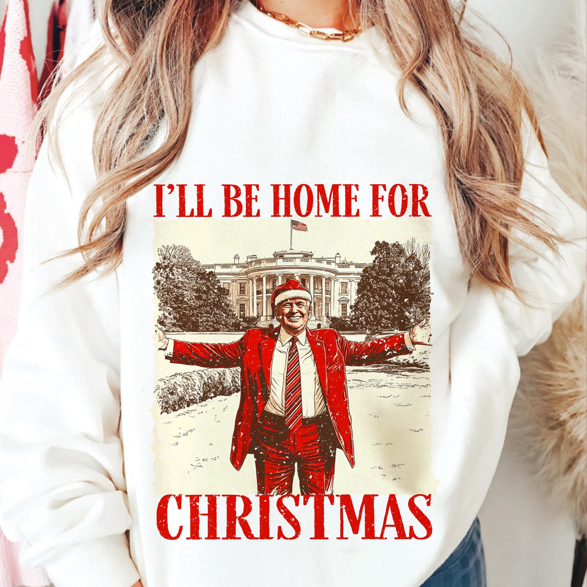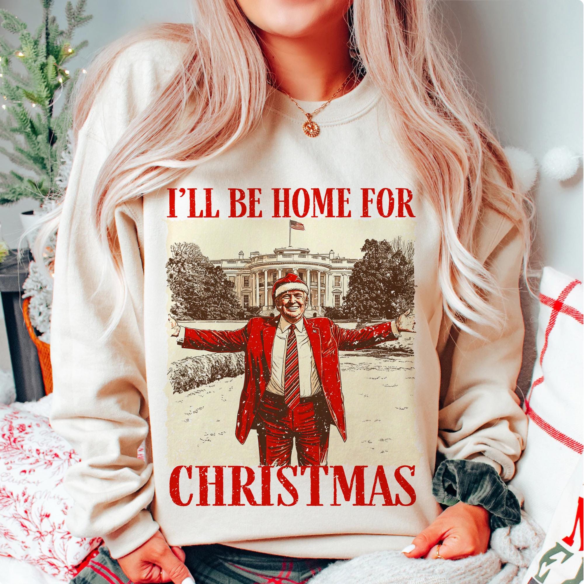 I'll Be Home for Christmas Trump2024 Funny Christmas Sweatshirt, Funny Political Shirts