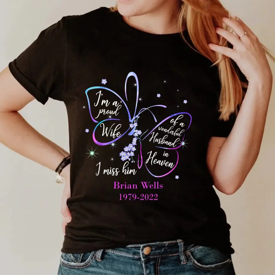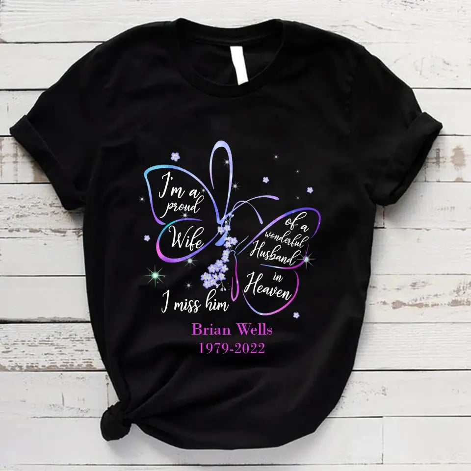 I'm A Proud Wife Of A Wonderful Husband In Heaven I Miss Him Personalized Shirt Memorial Gift