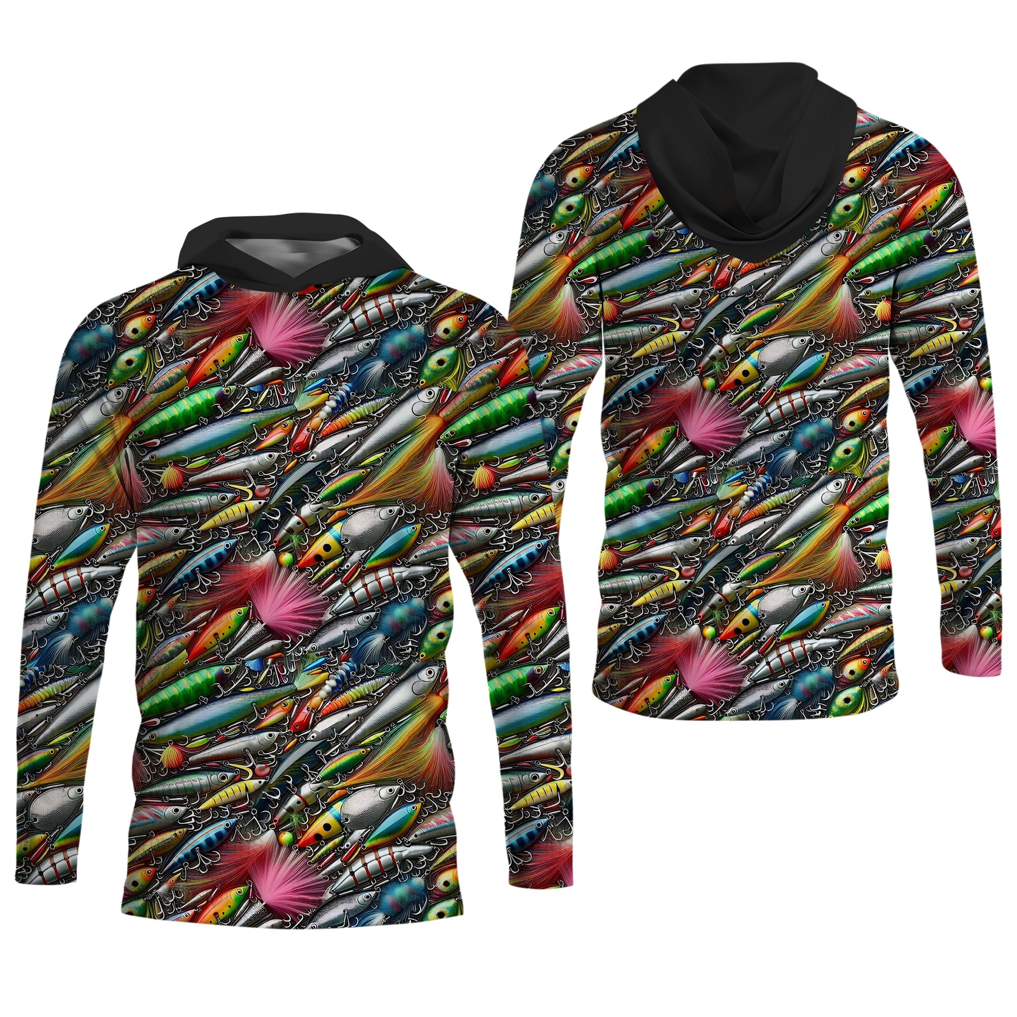 Colorful Fishing Lure SPF Shirts For Men, Long Sleeve Fishing Shirts, Hooded Sun Shirt, Mens Casual Shirts