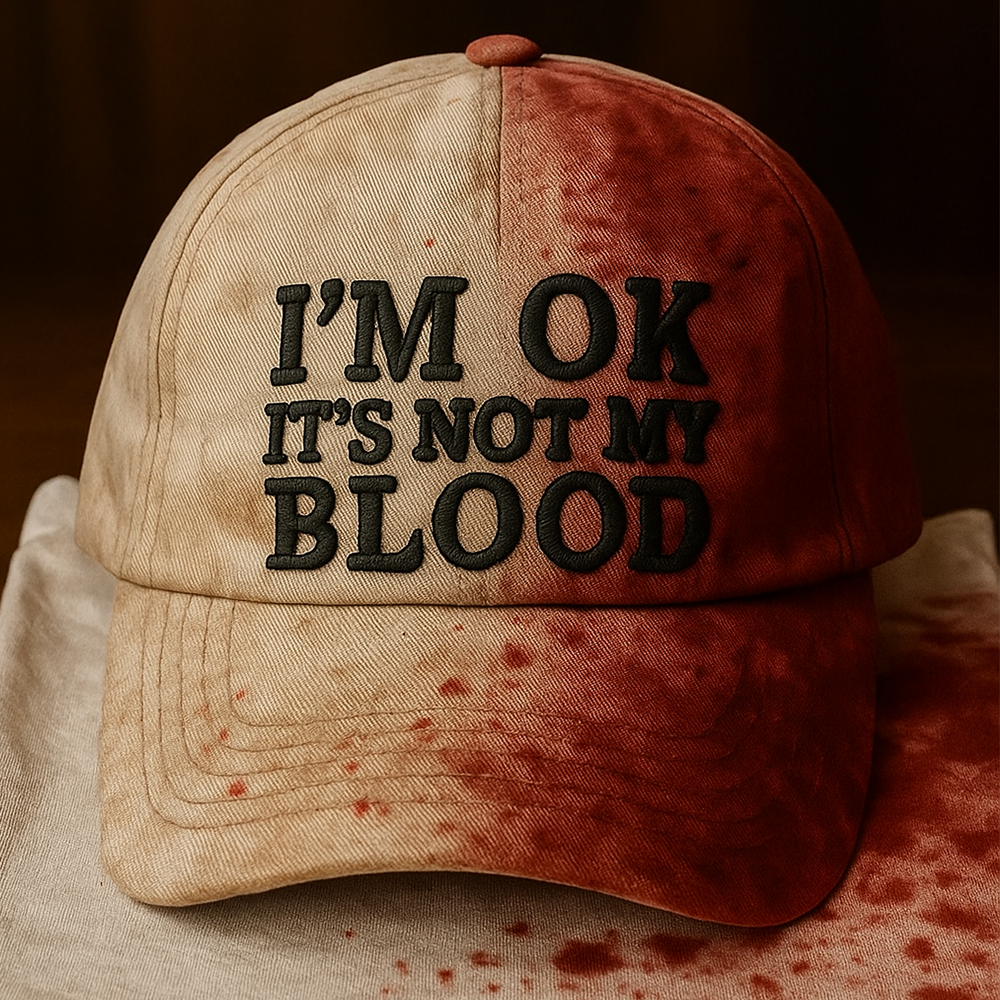 I'm OK, It's Not My Blood Embroidery Cap, Splatter Bloody Classic Cap, Bloody Halloween Baseball Cap, Horror Lover Gift