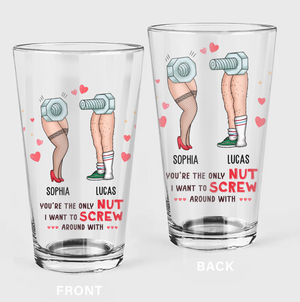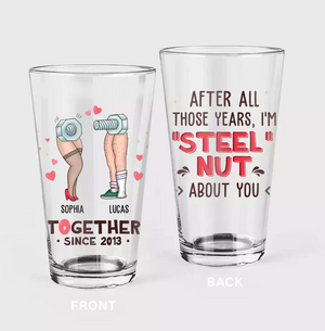 I'm "Steel" Nut About You Pint Glass, Nut And Screw Custom Pint Glasses, Funny Couple Gifts